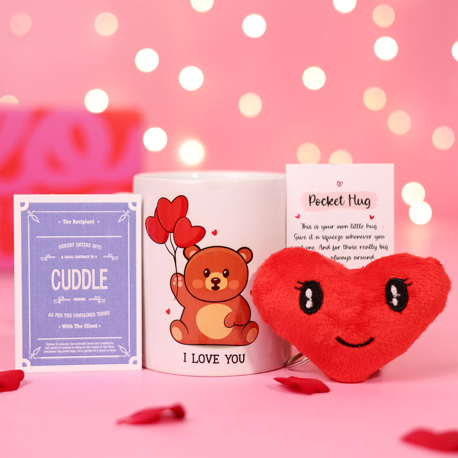 This one's all about closeness and comfort. The pocket hug card is perfect for moments when you miss each other, the cuddle contract keeps things playful, and the I love you doodle mug turns everyday routines into warm reminders.