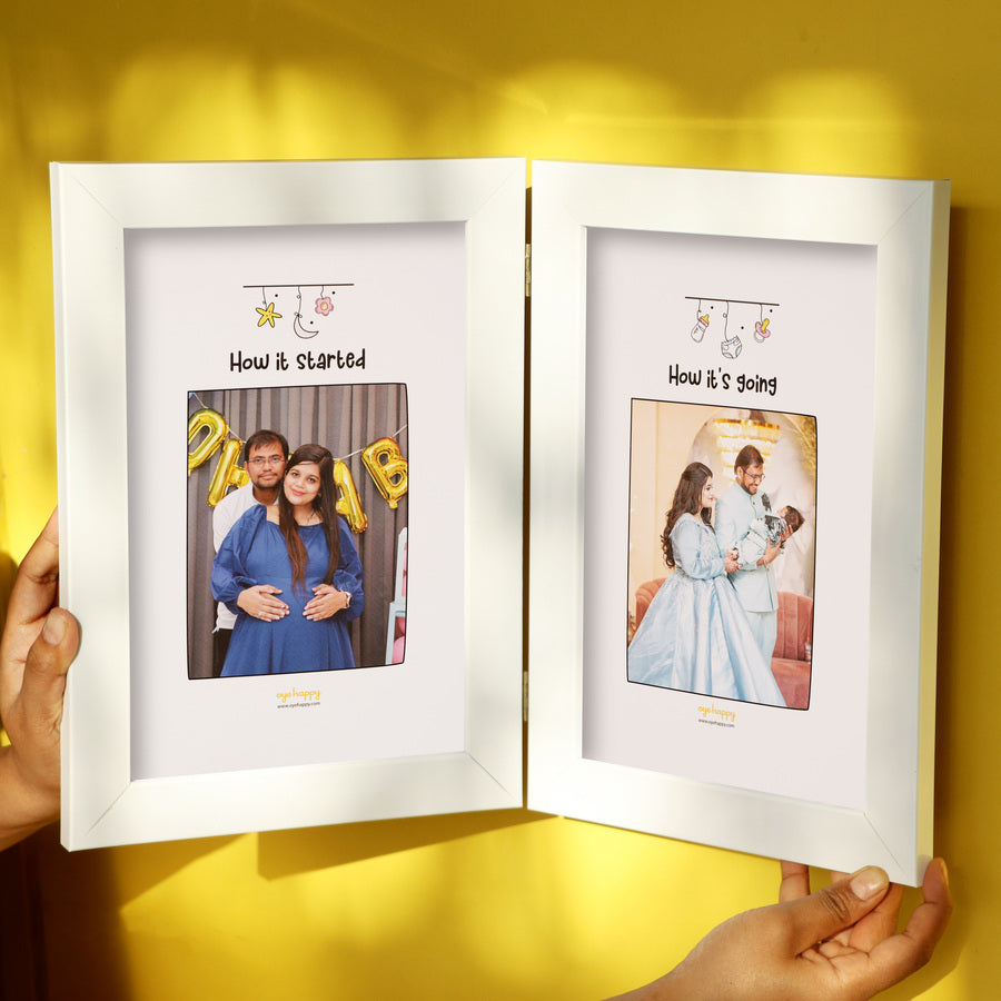 You can customize the frame with any two photos that reflect this beautiful transformation, whether it’s the excitement of expecting or the overwhelming joy of holding your baby for the first time.