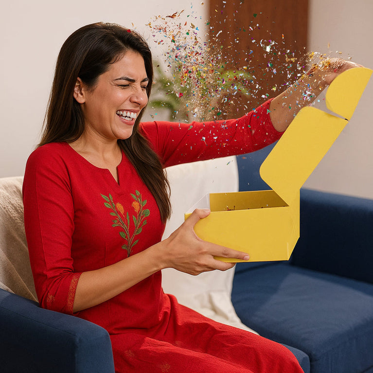 Looking for something cute and thoughtful for your sister or bhabhi this Rakshabandhan? Here's a surprise box that has the prettiest pair of jhumkas she’ll definitely love. An adorable, sweet surprise to make her feel loved and pampered.