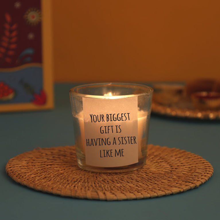 Look, you could’ve just said 'I love you'. But this candle would do a better job. Plus it will remind your sibling and cousins who their favourite sister is. It’s funny, it’s useful, and most importantly, it makes your sibling rolll their eyes every time they light it. Genius? I know.Specifications:Size of the Candle - 5.5 x 5.5 cms