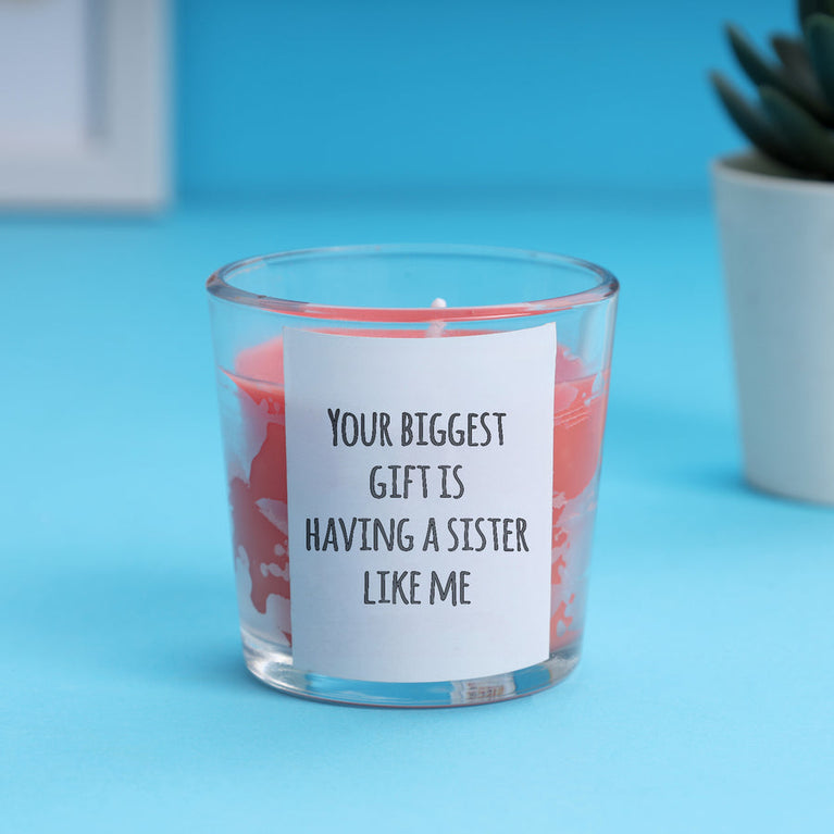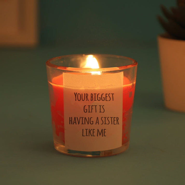Look, you could’ve just said 'I love you'. But this candle would do a better job. Plus it will remind your sibling and cousins who their favourite sister is. It’s funny, it’s useful, and most importantly, it makes your sibling rolll their eyes every time they light it. Genius? I know.Specifications:Size of the Candle - 5.5 x 5.5 cms