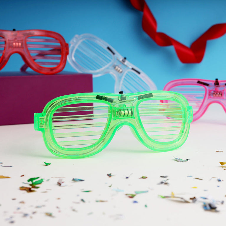 Light up the night with these vibrant LED Glasses! Featuring bright, colorful LEDs and a bold shutter-style design, they’re the ultimate party accessory for concerts, birthdays, festivals, and club nights. Durable, fun, and easy to use—just switch them on and steal the show!Specifications:Quantity - 1 LED GlassColors - Green, Red, White, Pink (assorted)Size - 14.5 cm x 5.5 cm
