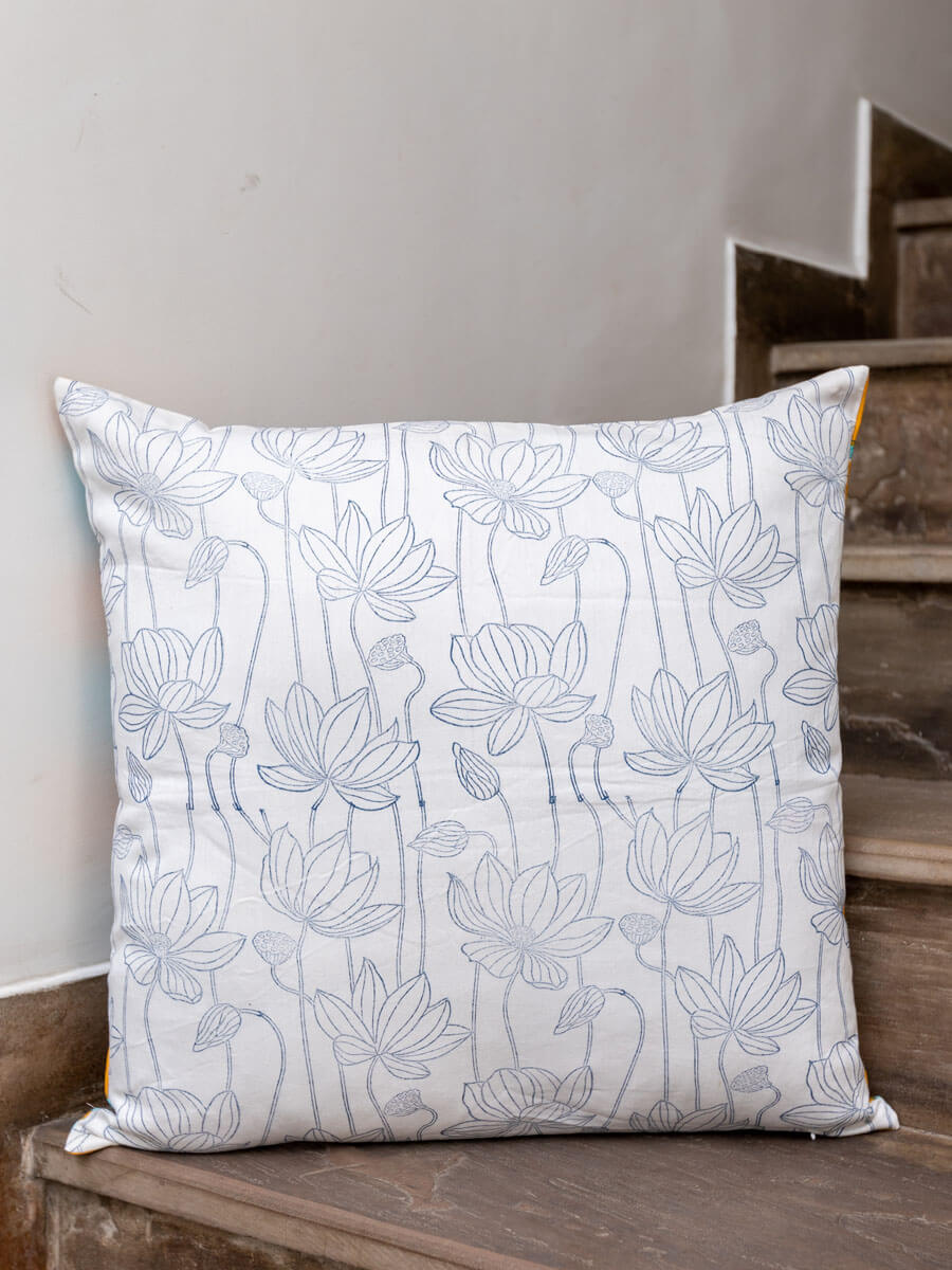 Padma or the Lotus is a central figure in many art forms including Pichhwai. It's a flower with meaning, beauty, and great cultural significance. The origin of the Lotus in Hindu mythology goes as far back as 'Samudra Manthan'. Its first association is with Lakshmi who also emerges from 'Samudra', hence, is referred to as Padmaja or Padmavati. This hand block printed home textiles collection is inspired by the beautiful lotus and other nature inspired elements.