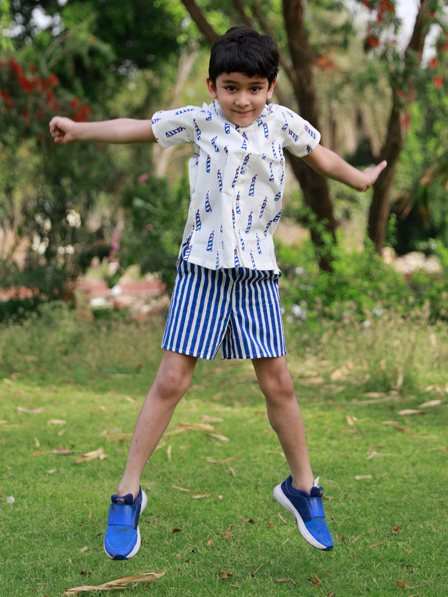 Blue Lighthouse Organic Cotton Block Printed Shirt