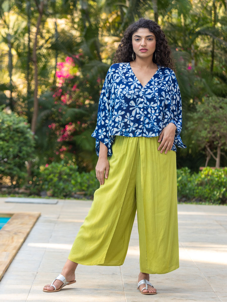 - Comfort-fit, ankle-length, wrap-around palazzo pants
