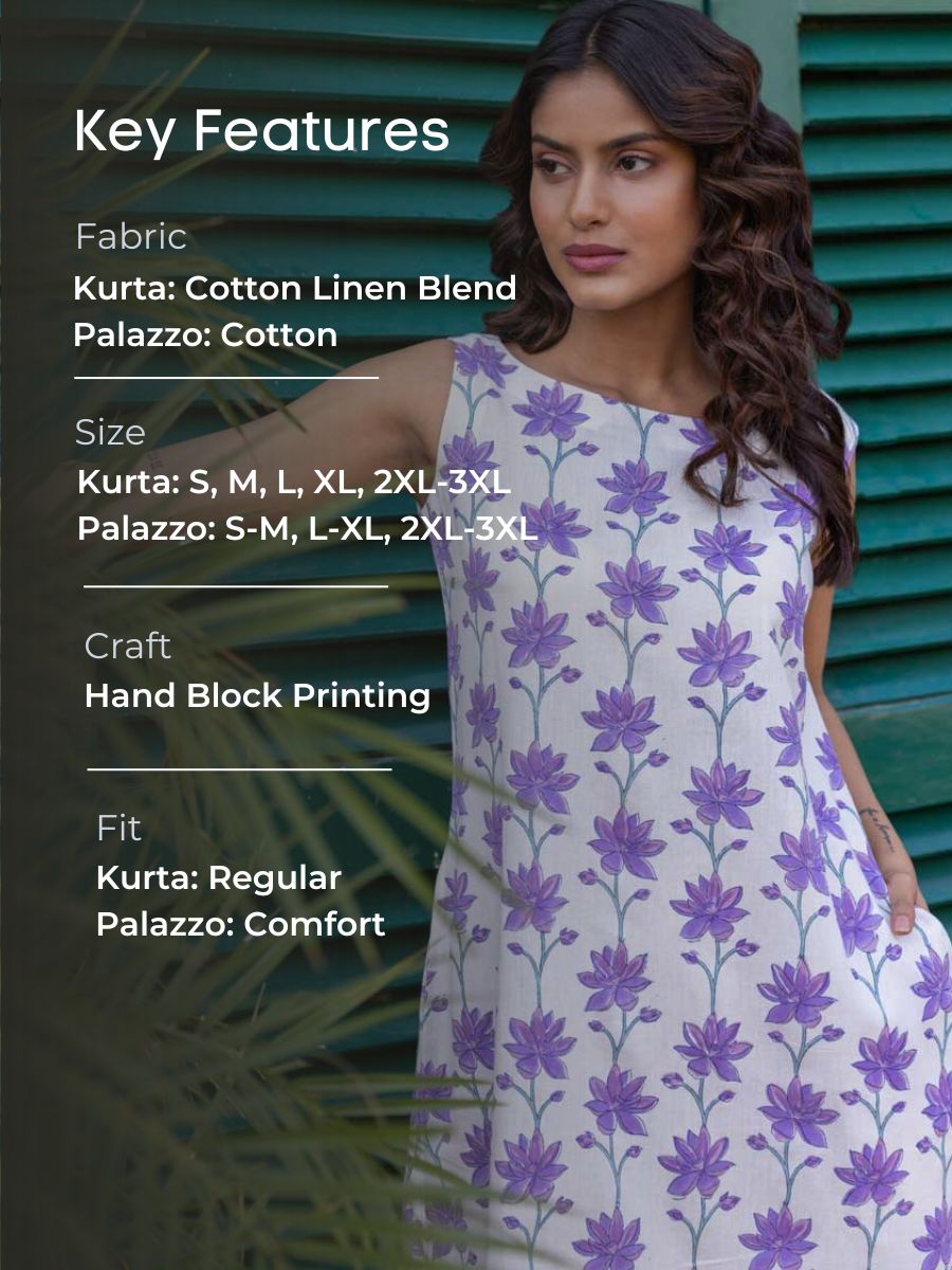 • Fabric: Cotton linen blend kurta and premium cotton palazzo