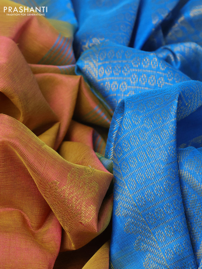 10 yards silk cotton saree dual shade of mustard and cs blue with zari woven buttas and zari woven border