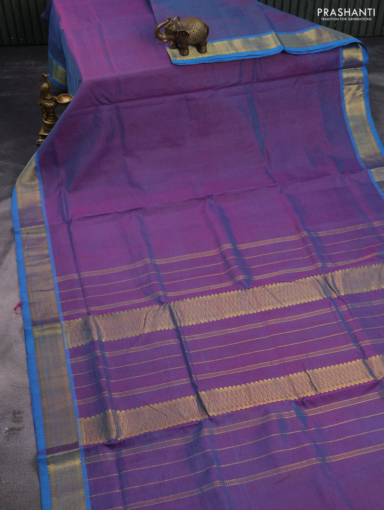 10 Yards silk cotton saree dual shade of teal green and purple with allover thread weaves and zari woven border