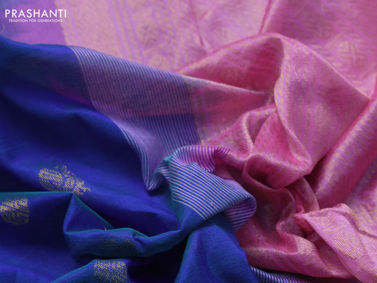 10 yards silk cotton saree dual shade of bluish pink with allover vairaosi pattern and zari woven border