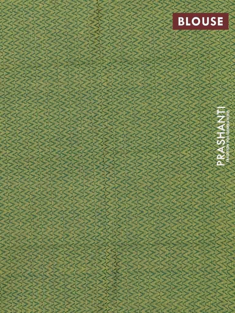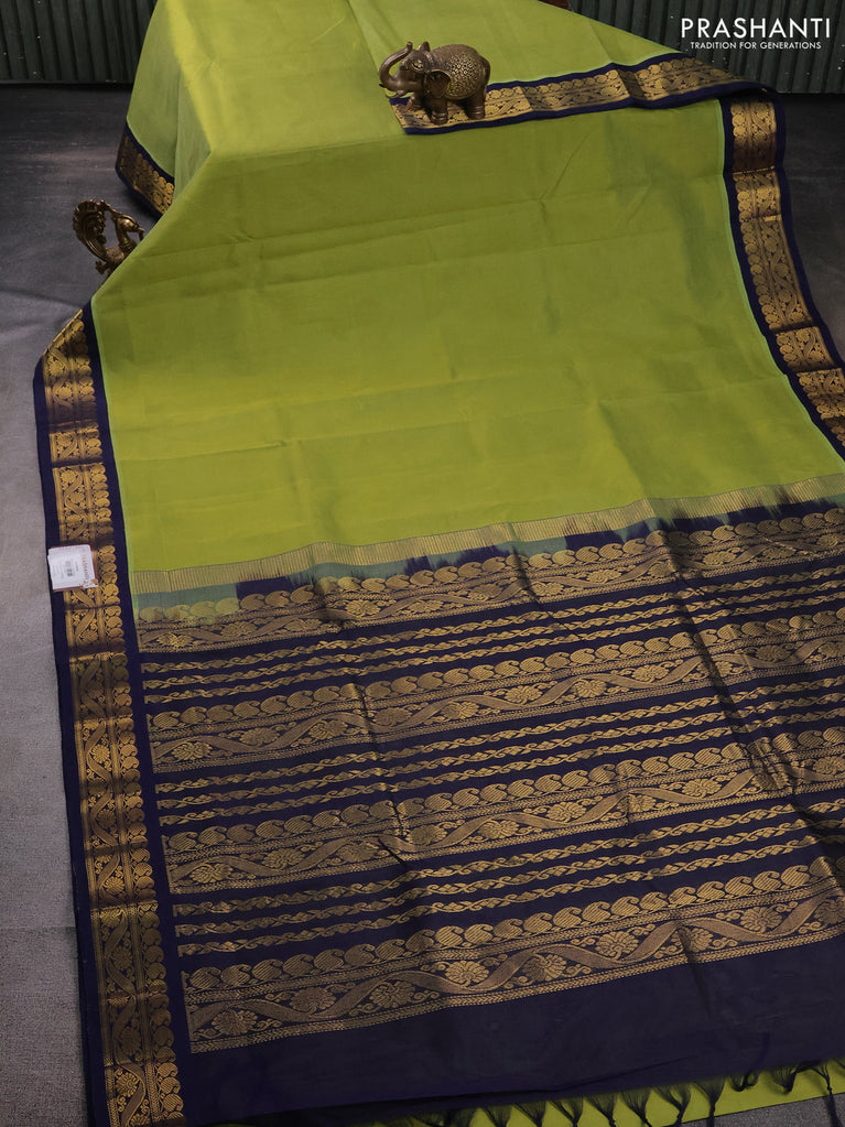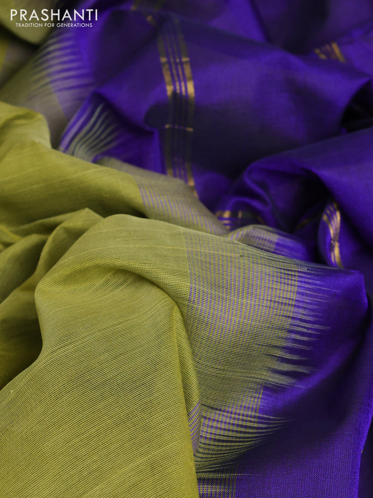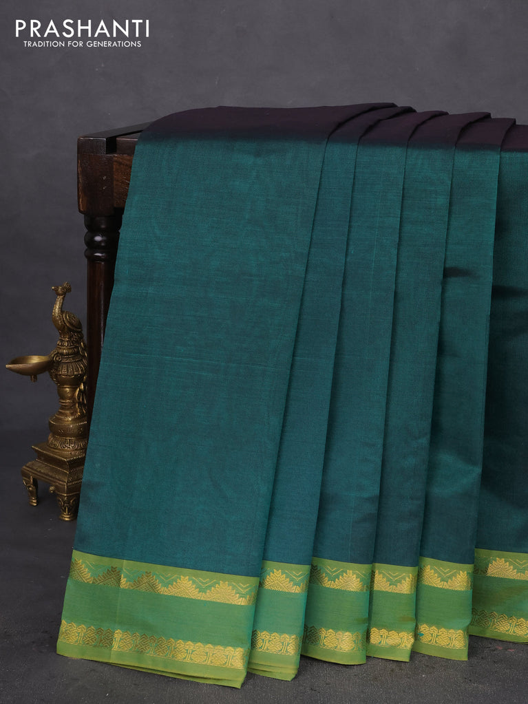 10 Yards silk cotton saree mehendi green and blue with plain body and annam zari woven border