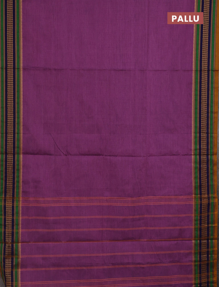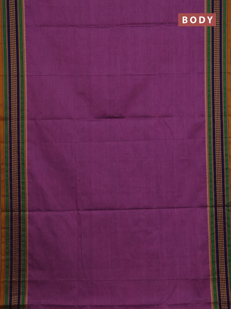10 Yards chettinad cotton saree purple shade and dual shade of green with plain body and thread woven border