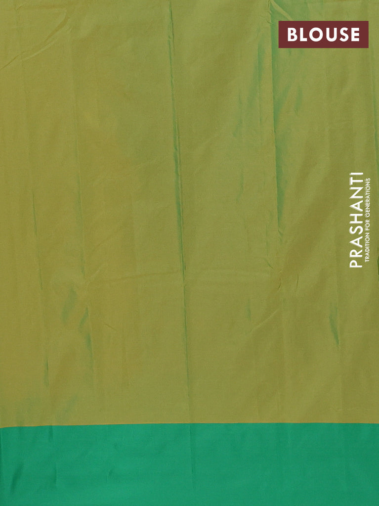 Arani semi silk saree mango yellow and dual shade of green with copper zari woven buttas and copper zari woven butta border