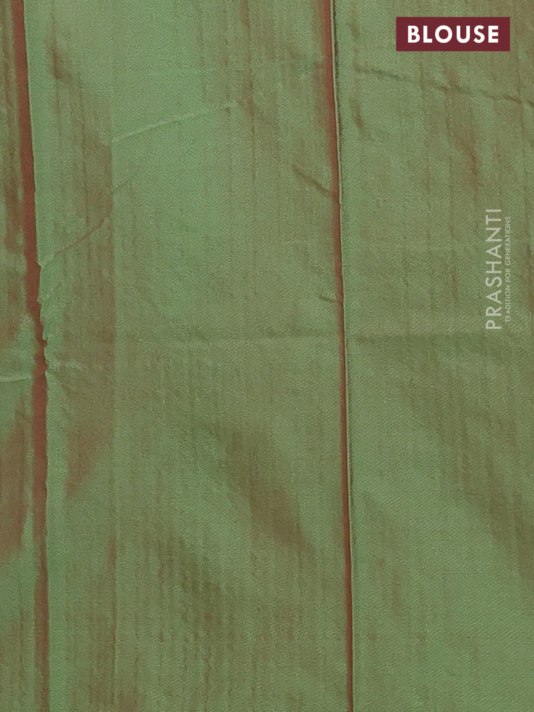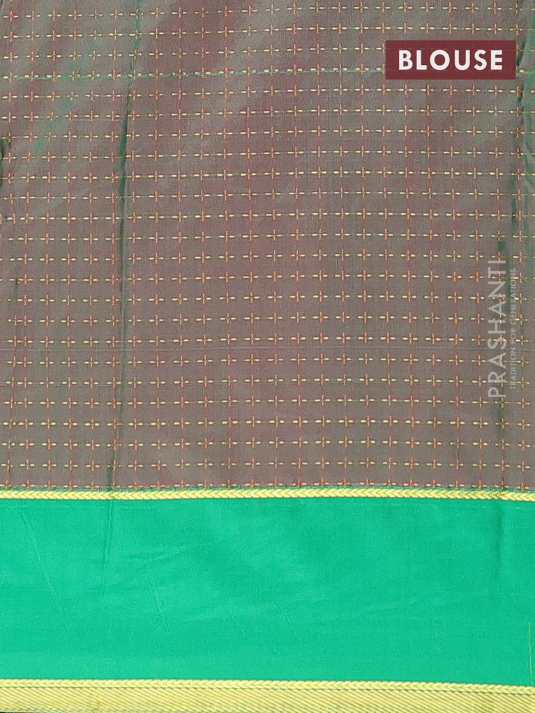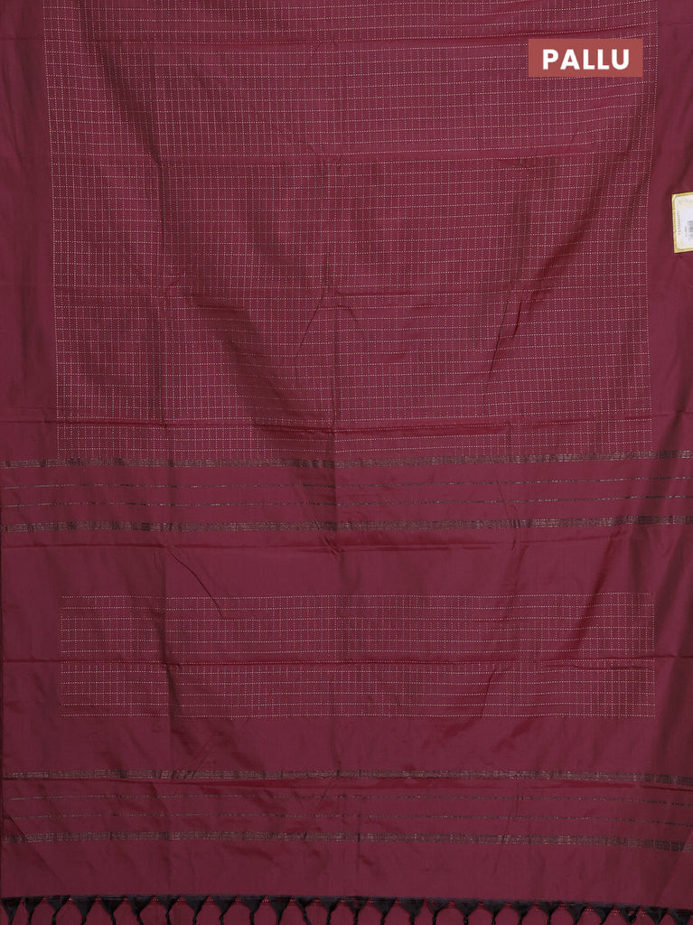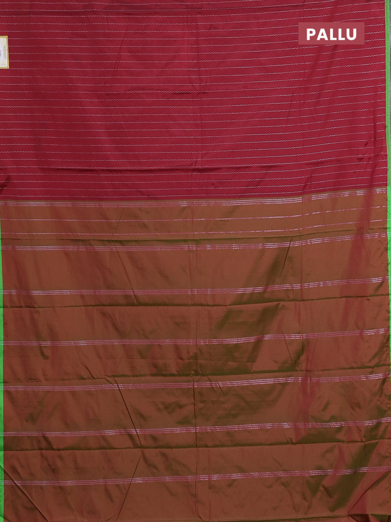 Arani semi silk saree maroon and light green with allover silver zari weaves and piping border