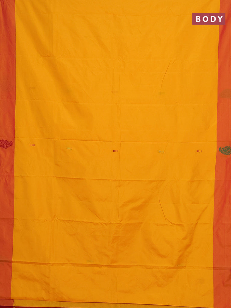 Arani semi silk saree mango yellow and dual shade of red with thread woven buttas and thread woven butta border