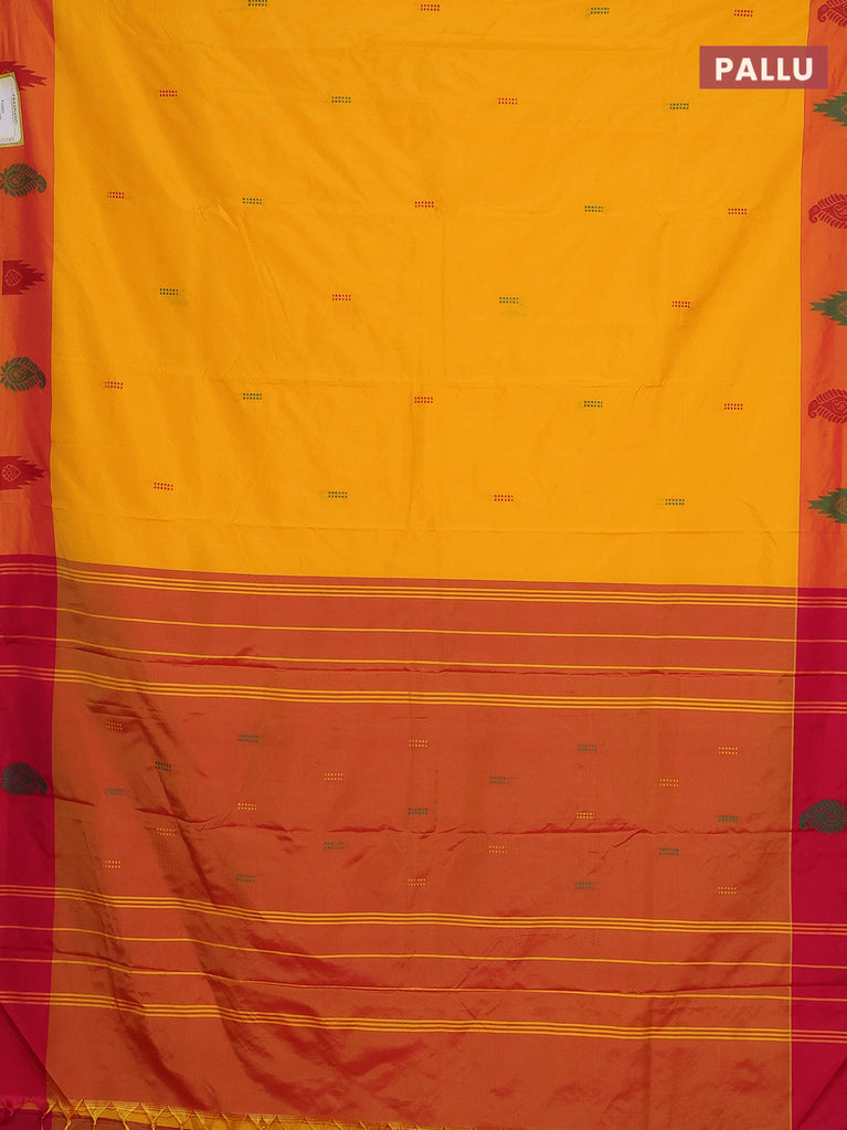 Arani semi silk saree mango yellow and maroon with thread woven buttas and thread woven butta border