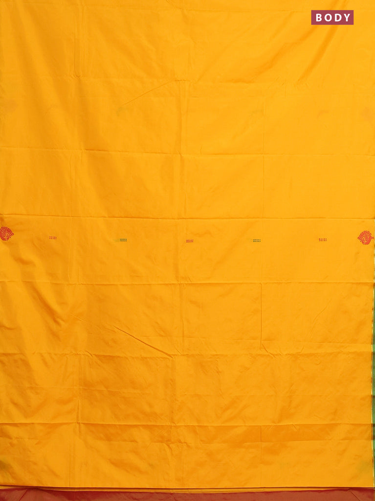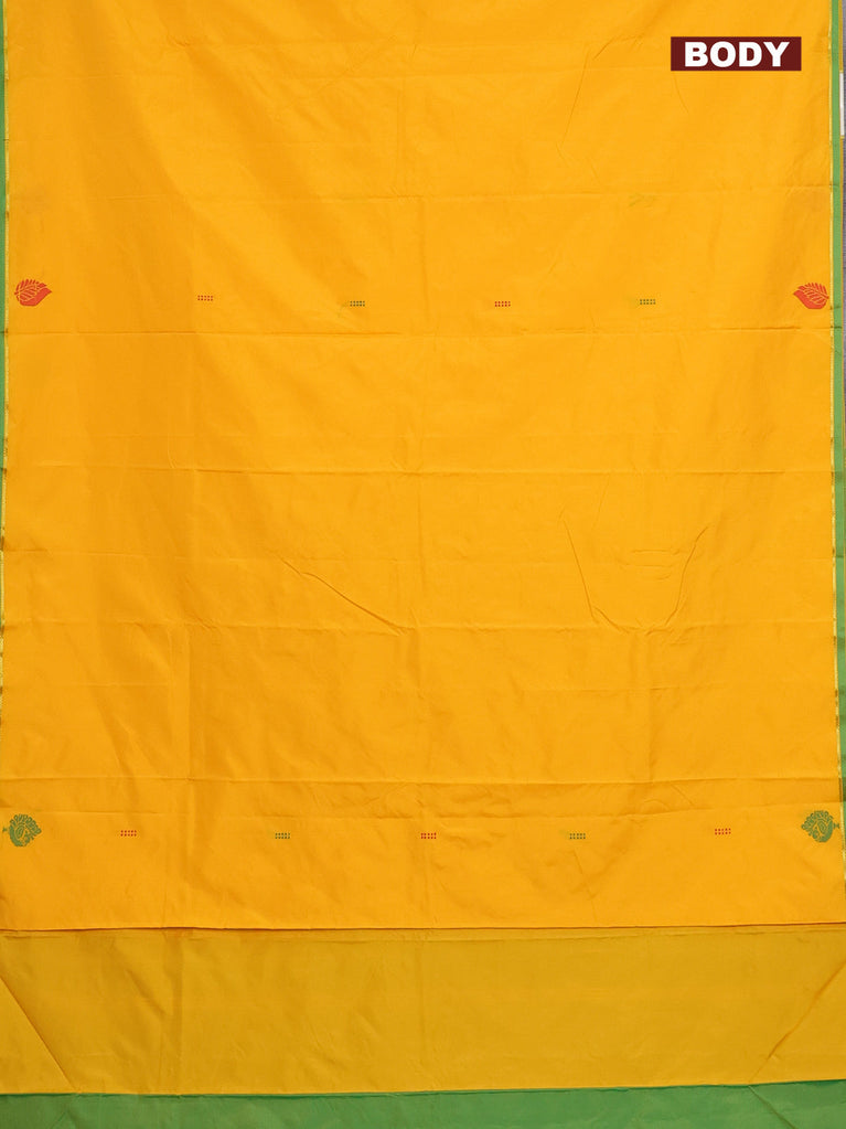 Arani semi silk saree mango yellow and green with thread woven buttas and thread woven butta border