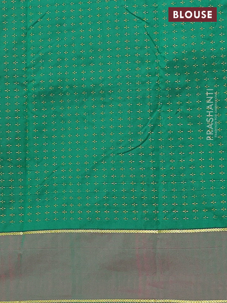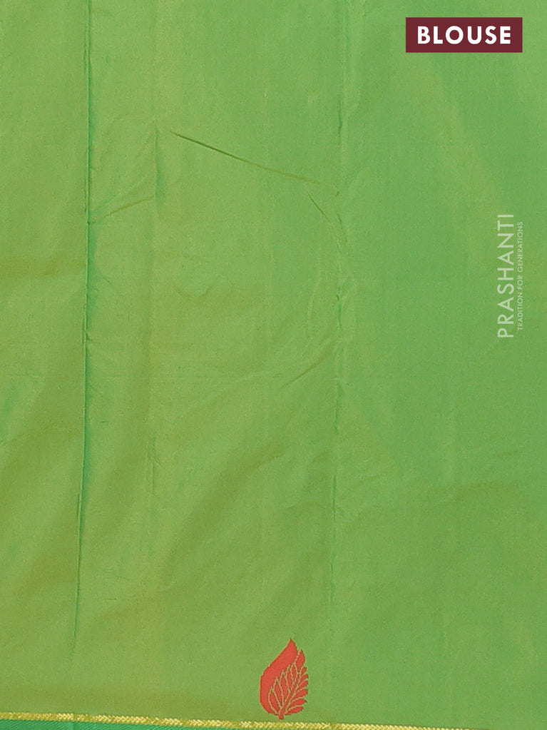 Arani semi silk saree manthulir green with allover silver zari weaves in borderless style