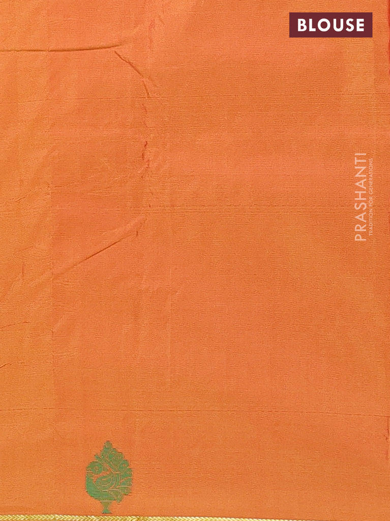 Arani semi silk saree magenta pink with copper zari woven buttas in borderless style