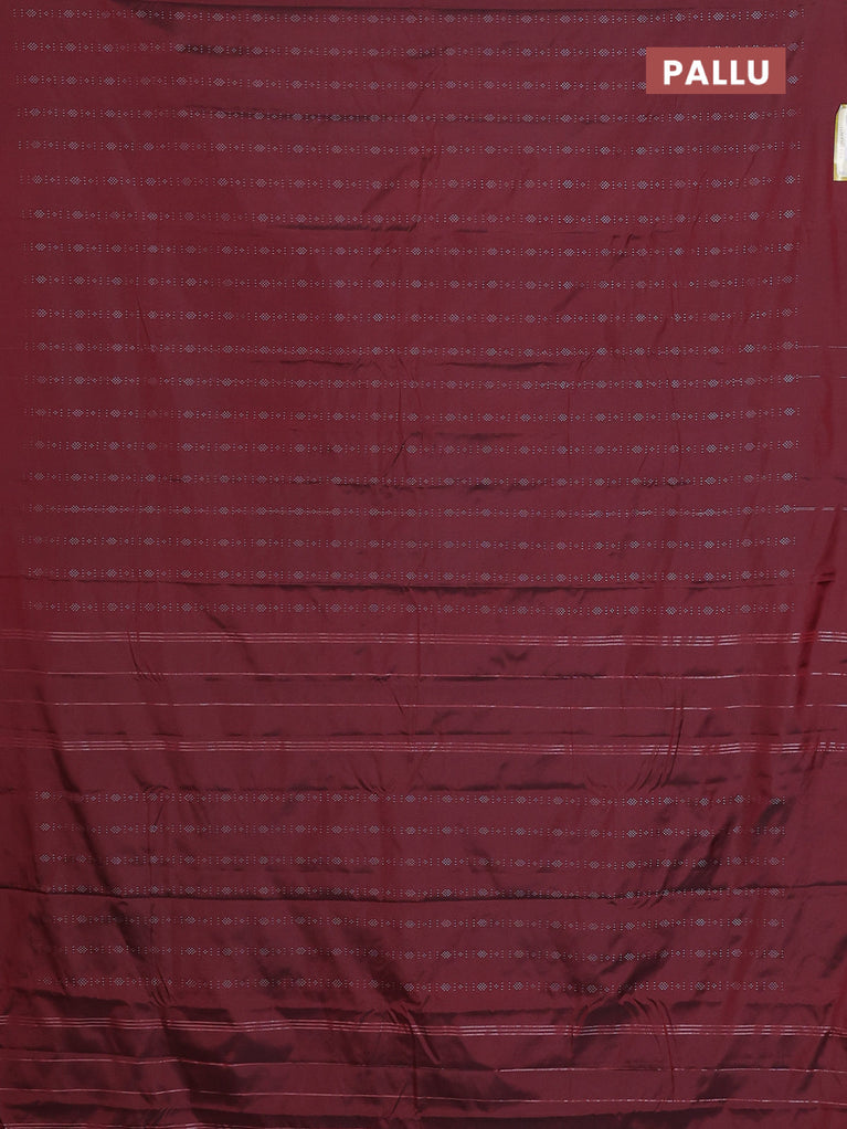 Arani semi silk saree maroon with allover silver zari weaves in borderless style