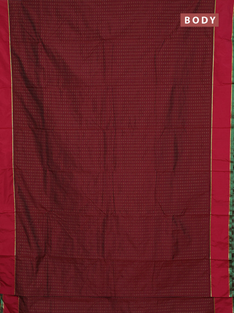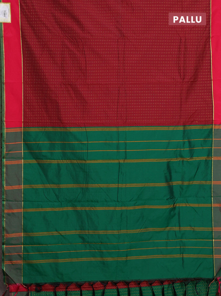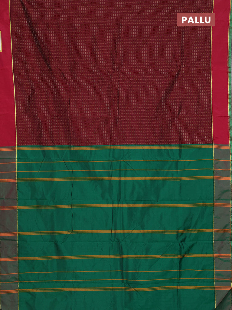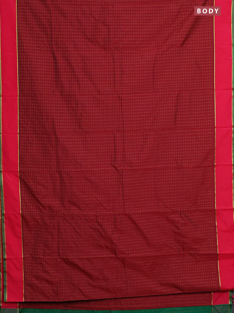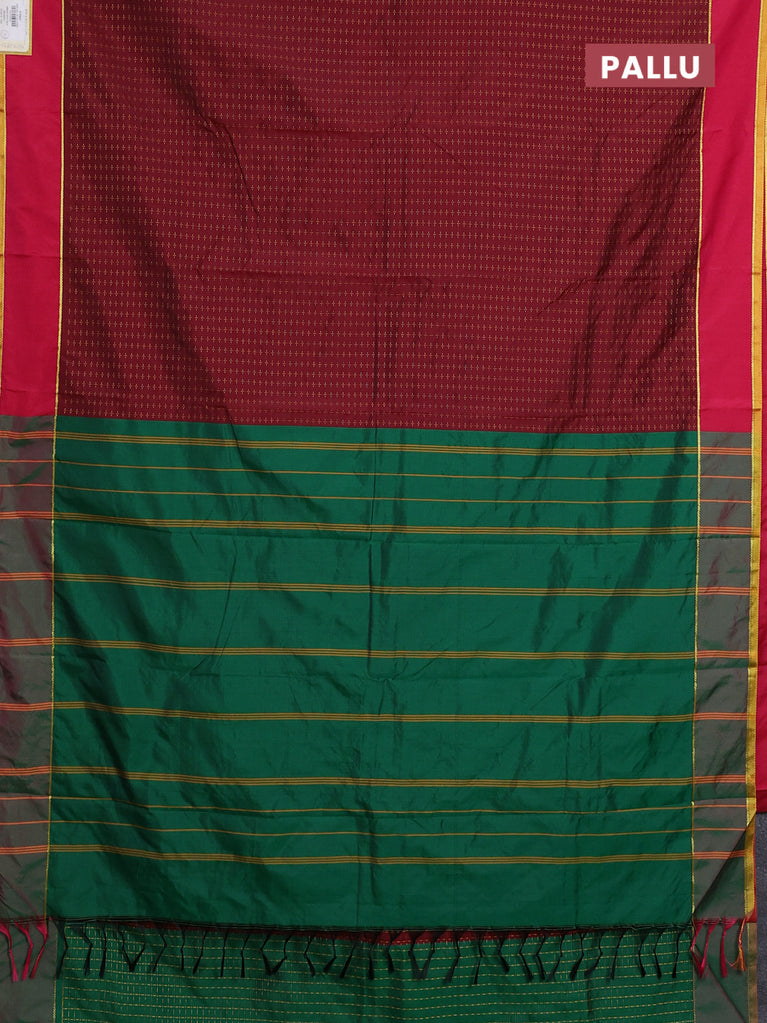 Arani semi silk saree maroon and dark green with allover thread weaves and rettapet zari woven border`