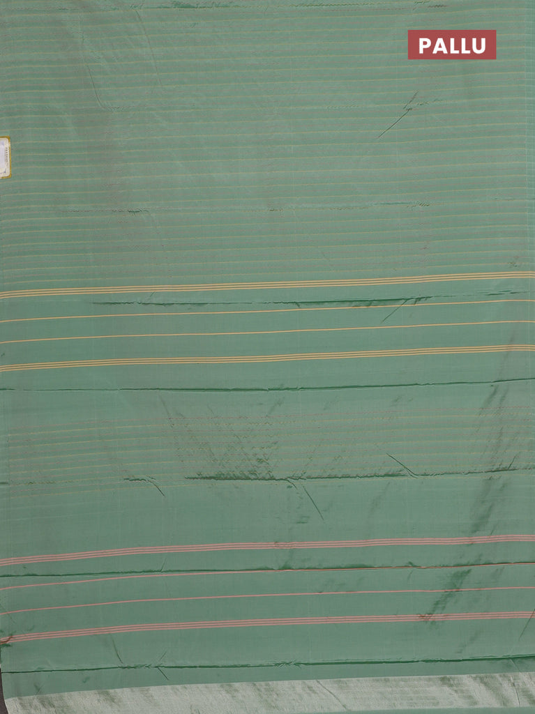 Arani semi silk saree pastel green with allover copper zari weaves in borderless style