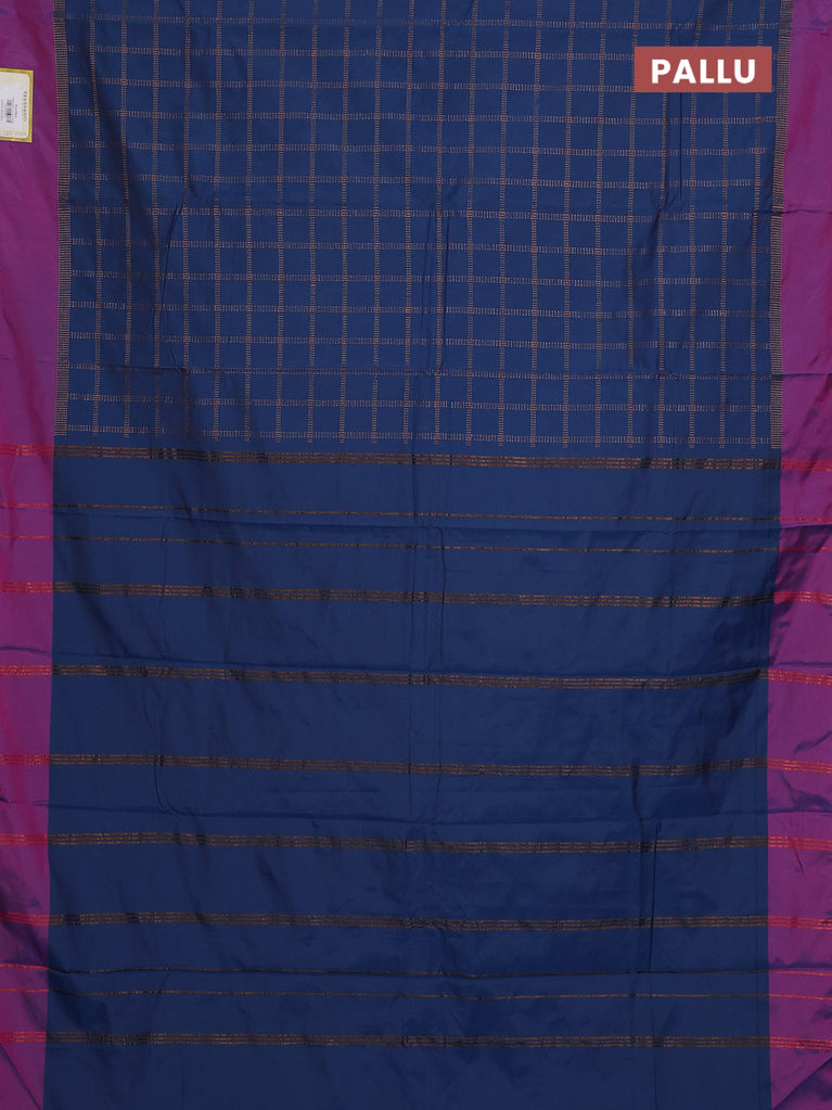 Arani semi silk saree peacock blue and magenta pink with allover copper zari checked pattern and copper zari woven simple border