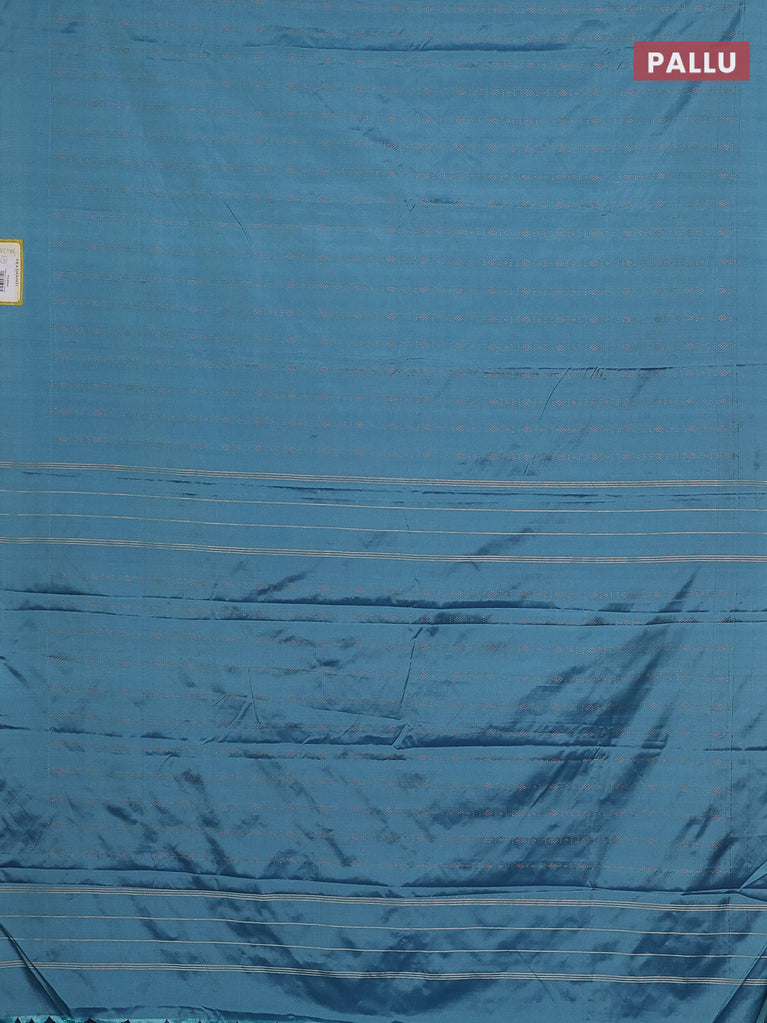 Arani semi silk saree pastel blue and teal blue with allover silver & copper zari weaves and zari woven border