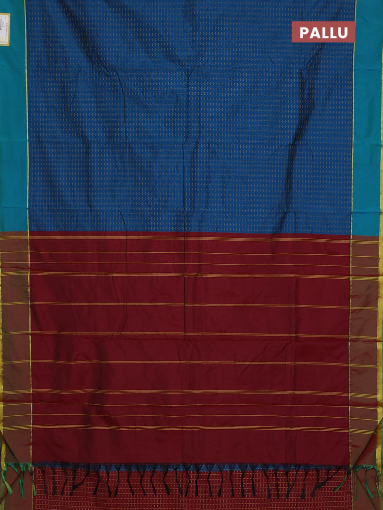 Arani semi silk saree peacock blue and maroon with allover thread weaves and rettapet zari woven border`