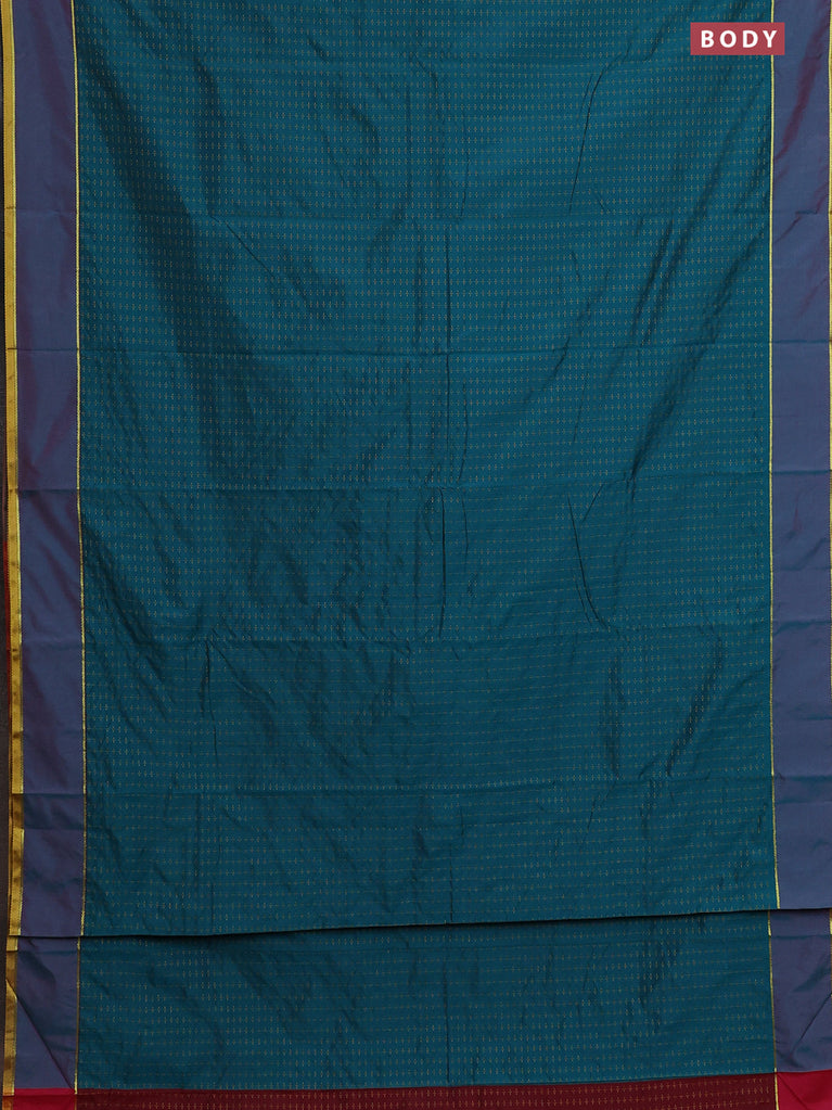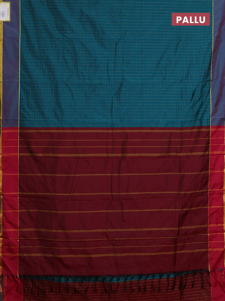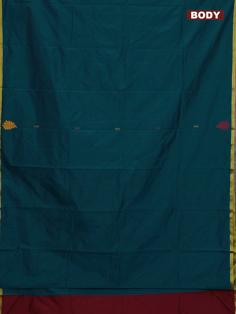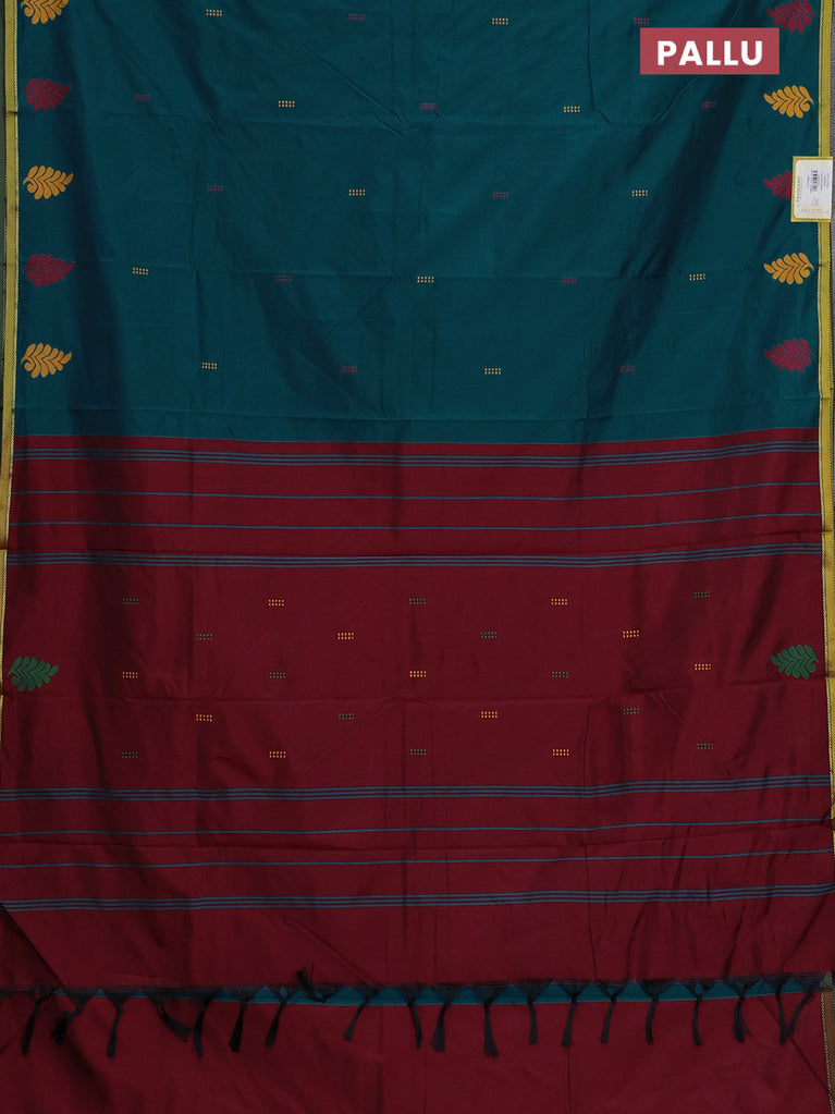 Arani semi silk saree peacock green and maroon with thread woven buttas and thread woven butta border