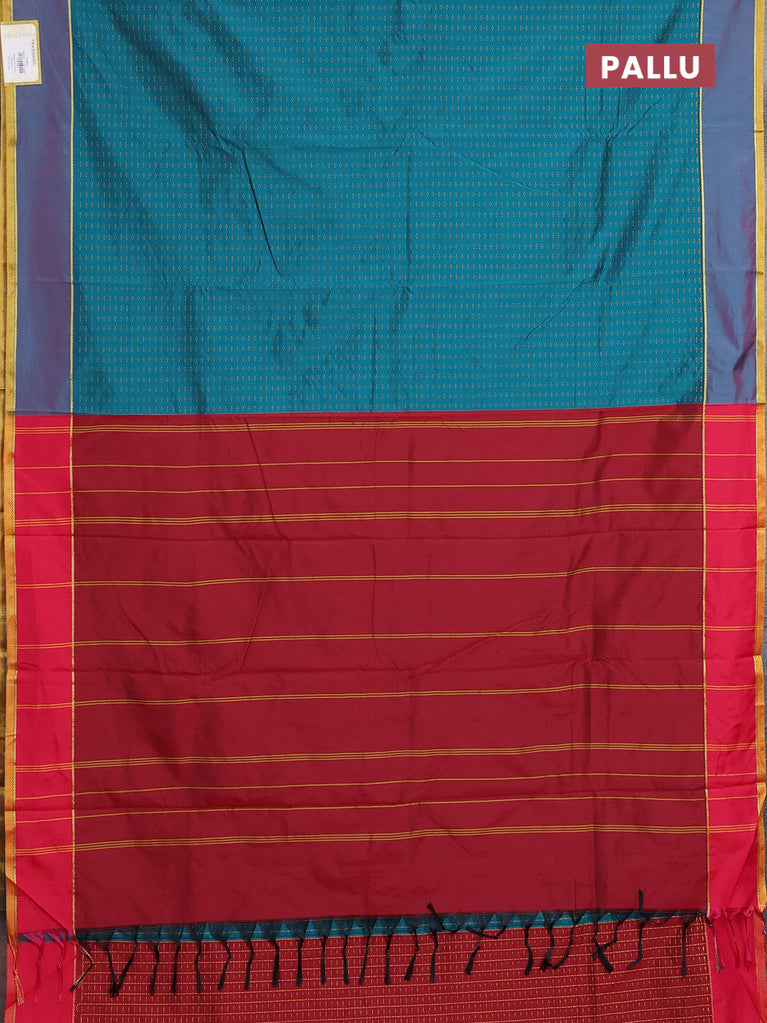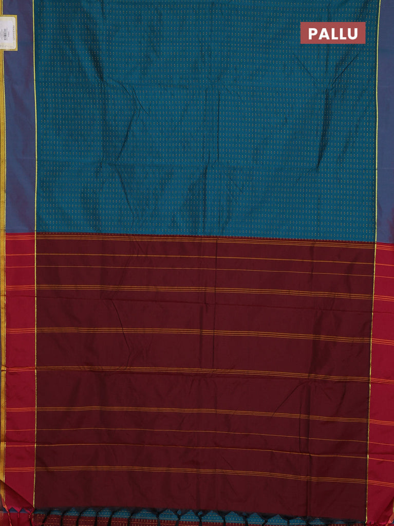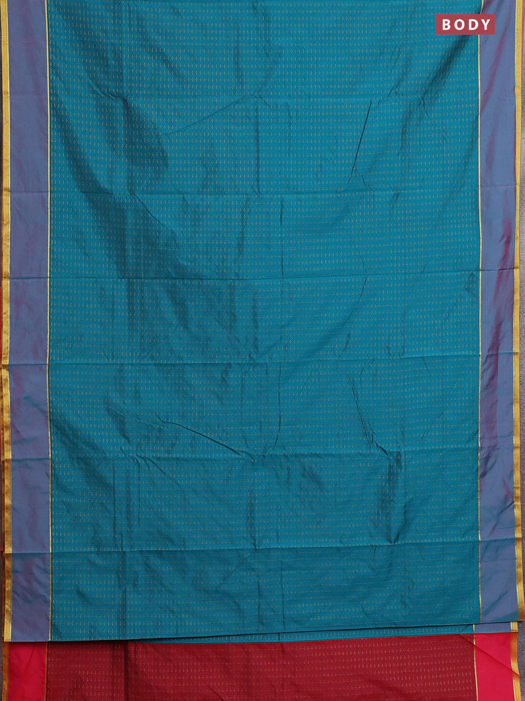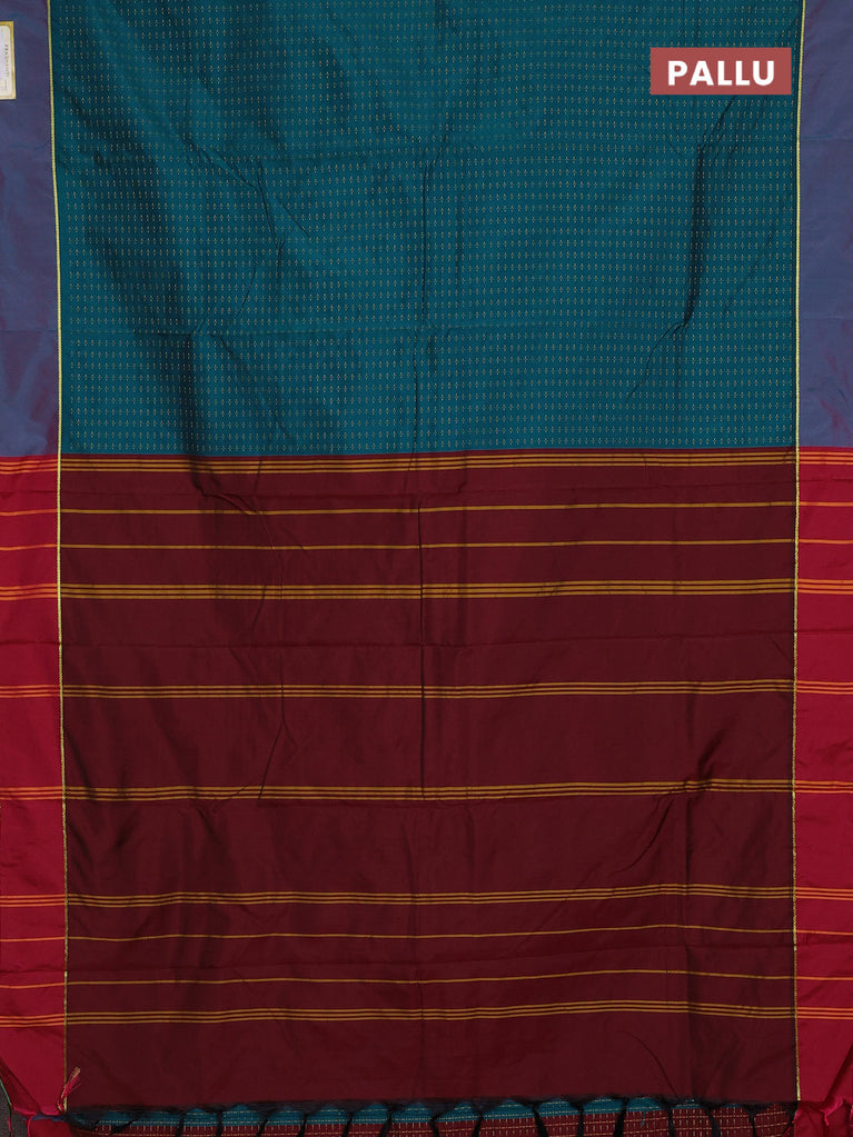 Arani semi silk saree peacock green and maroon with thread woven buttas and thread woven butta border