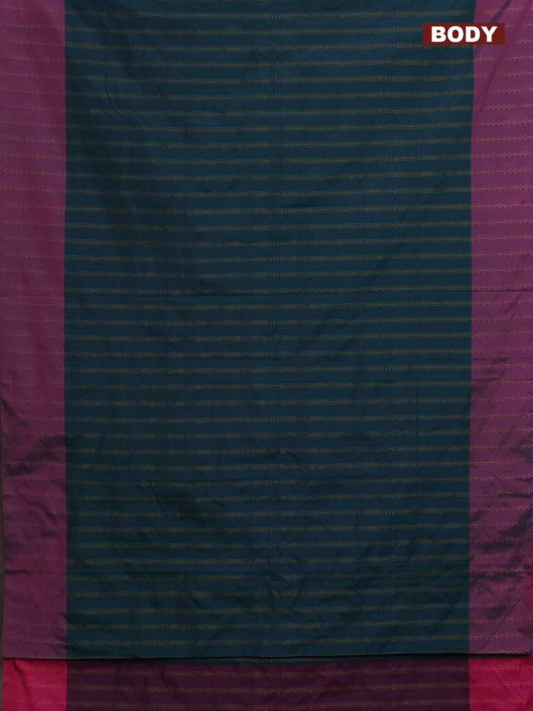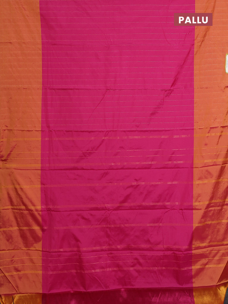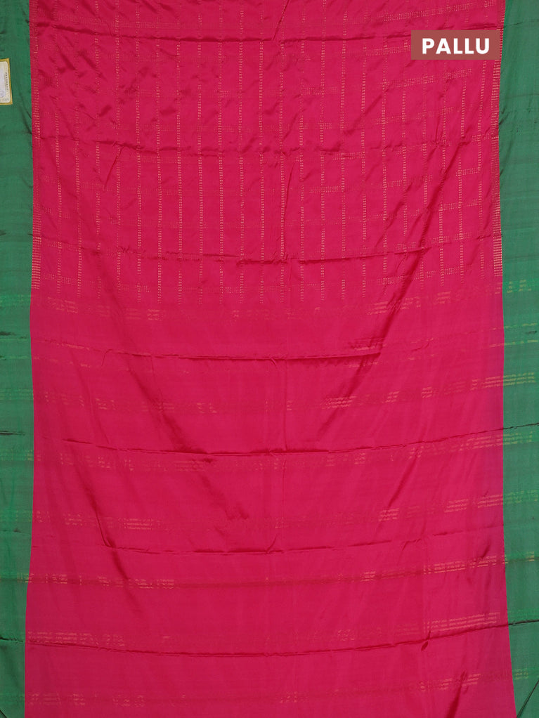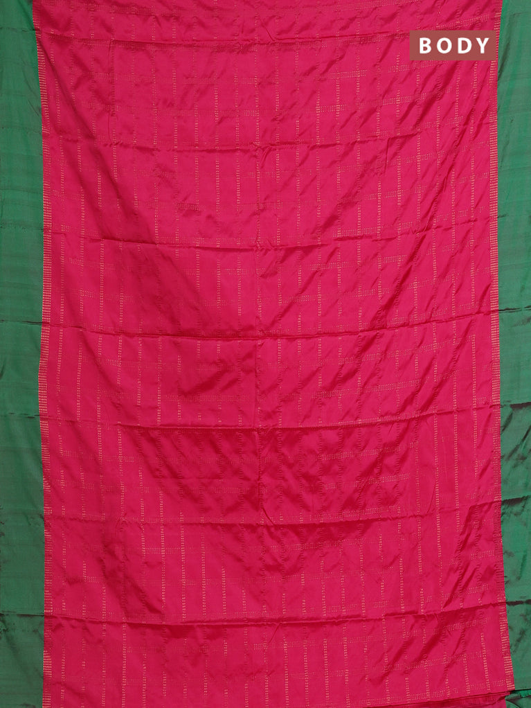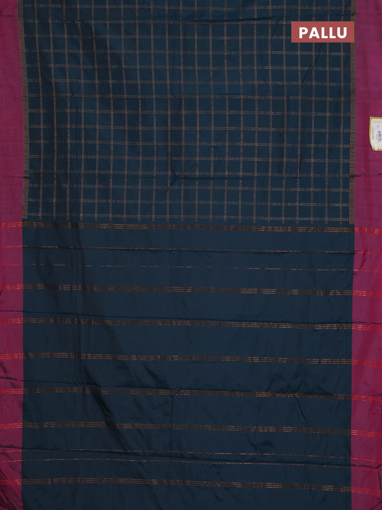 Arani semi silk saree peacock green and magenat pink with allover copper zari checked pattern and copper zari woven simple border