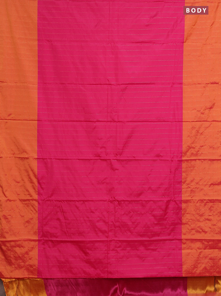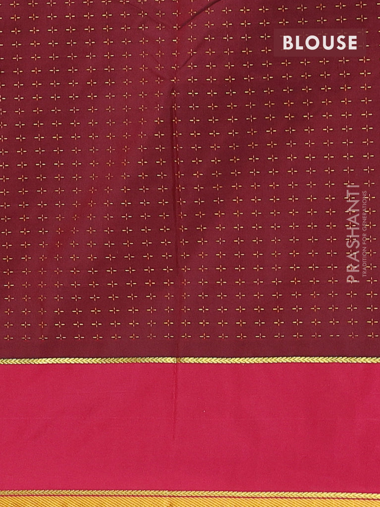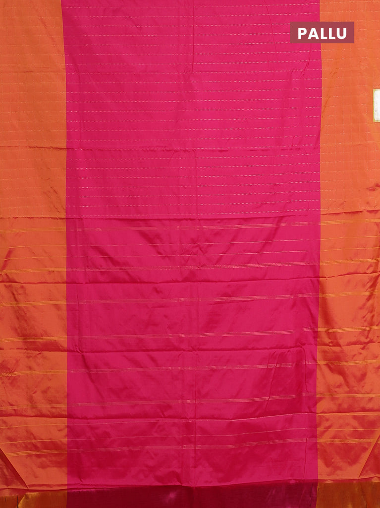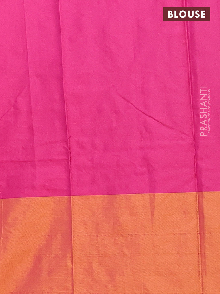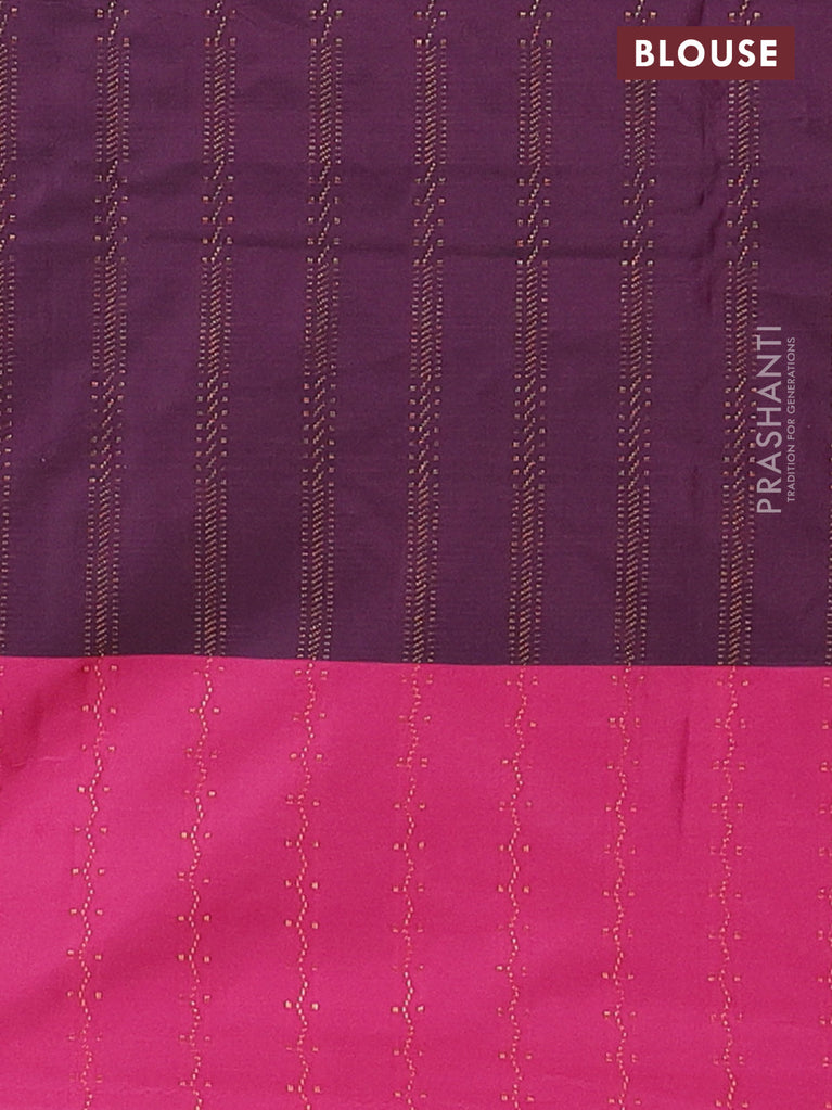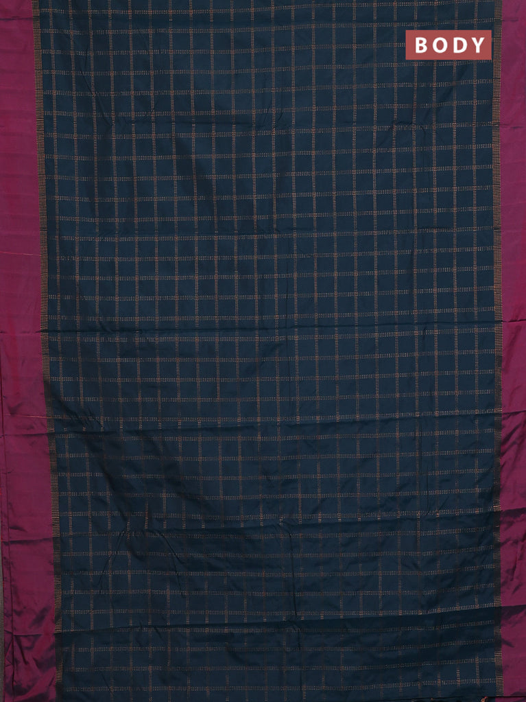 Arani semi silk saree peacock green and magenat pink with allover copper zari checked pattern and copper zari woven simple border