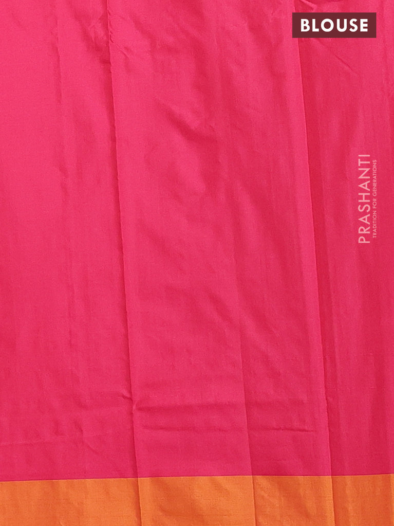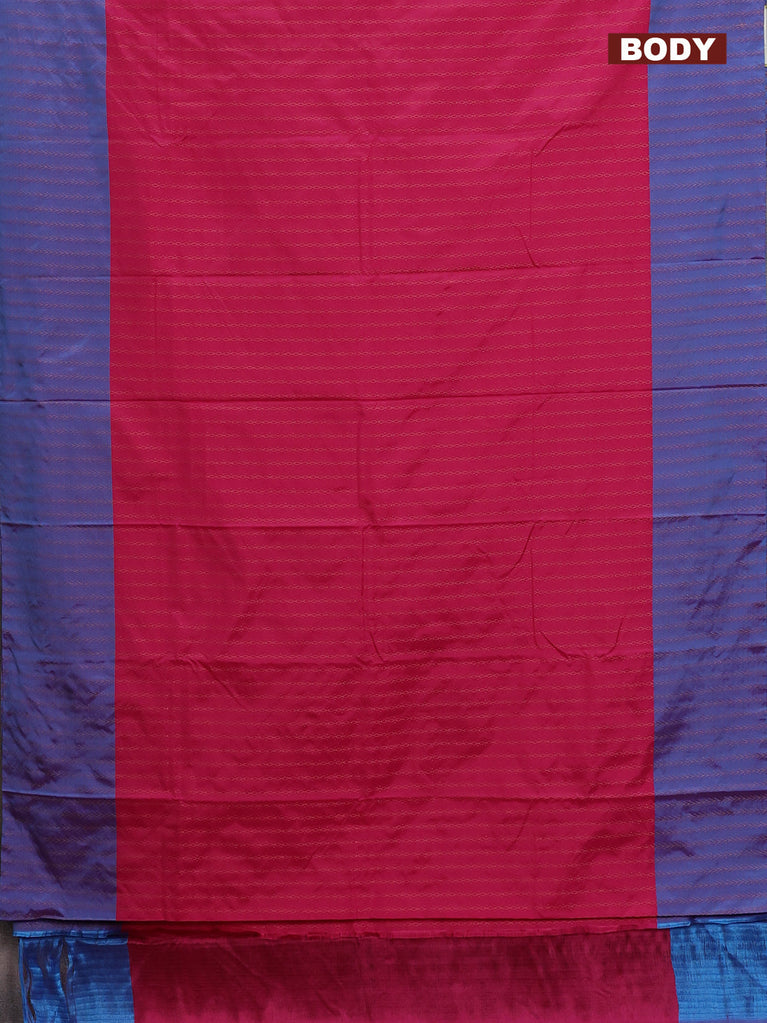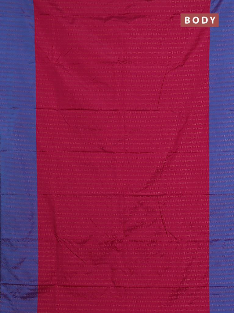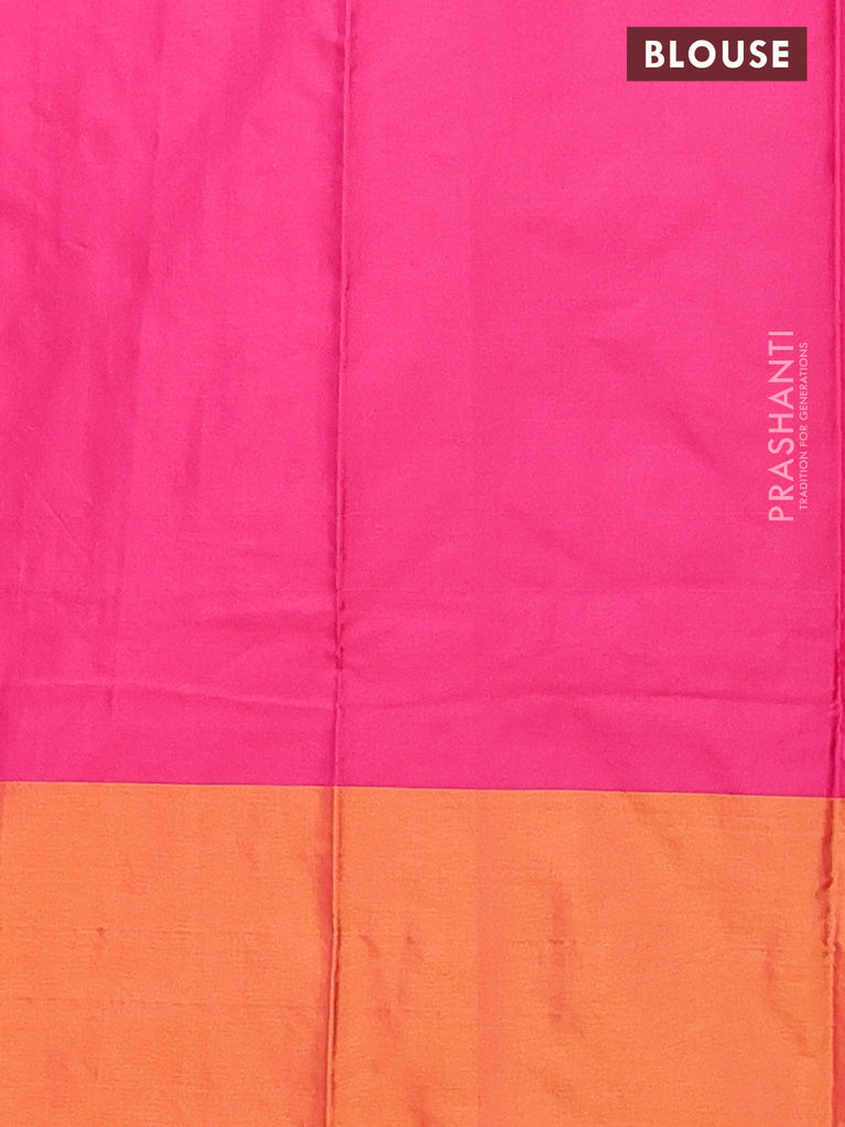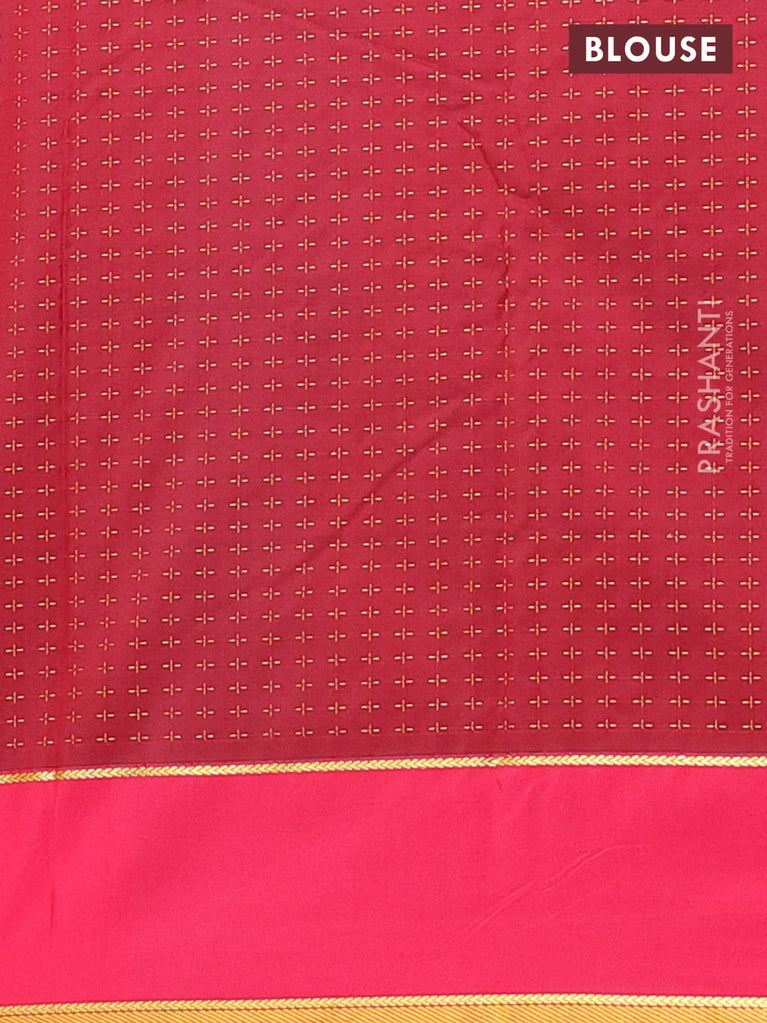 Arani semi silk saree peacock green and magenat pink with allover copper zari checked pattern and copper zari woven simple border