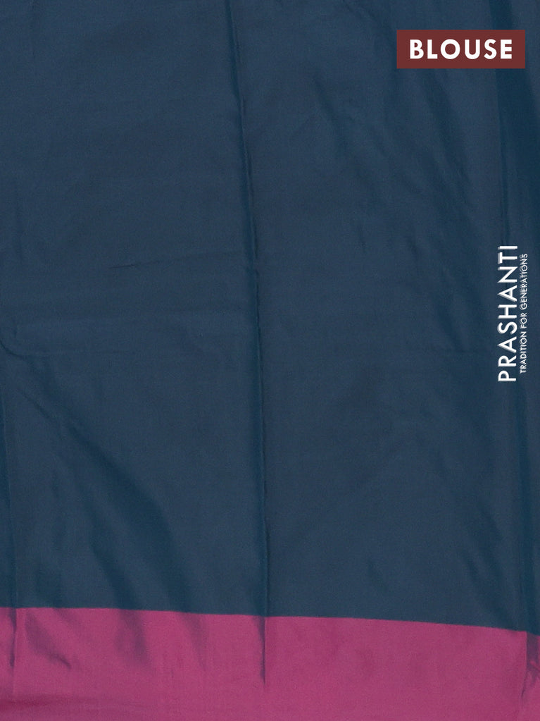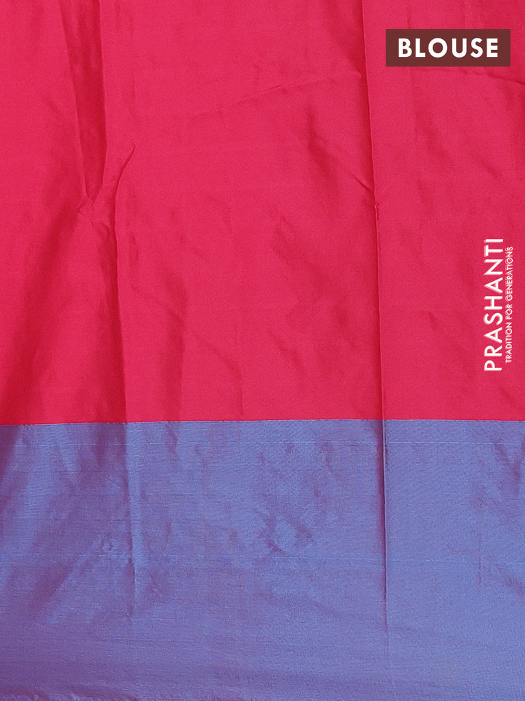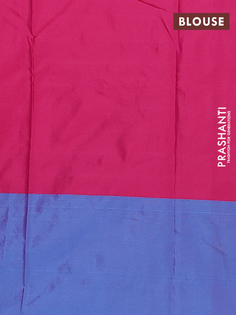 Arani semi silk saree pink and dual shade of cs blue with allover copper zari weaves and copper zari woven border