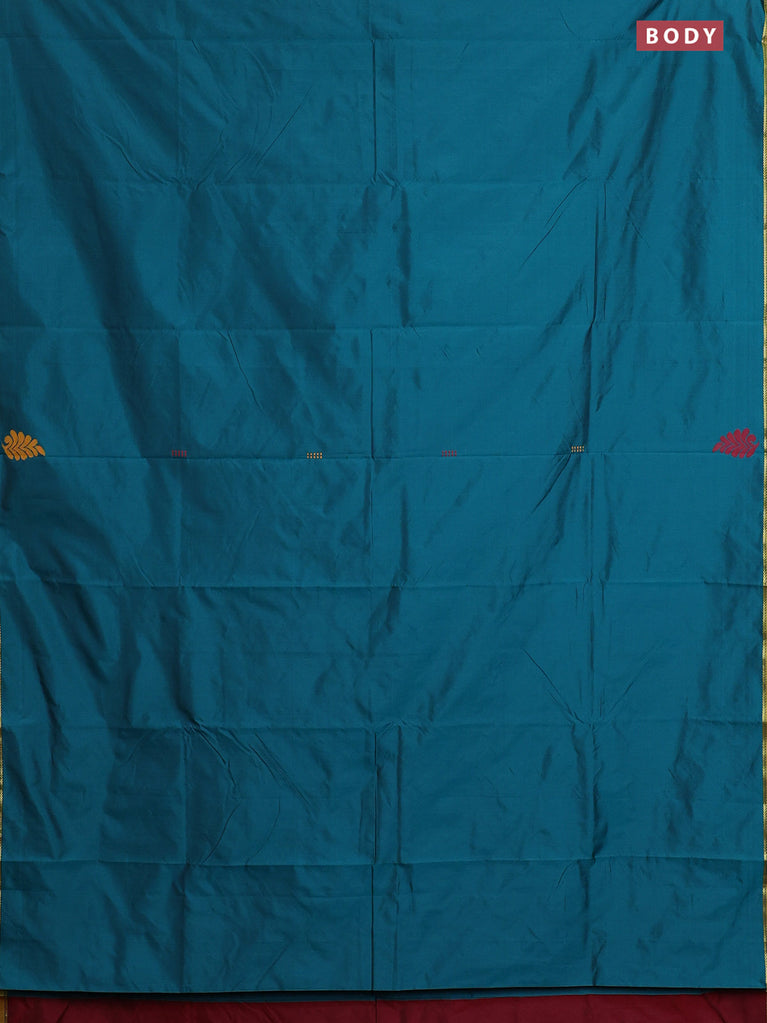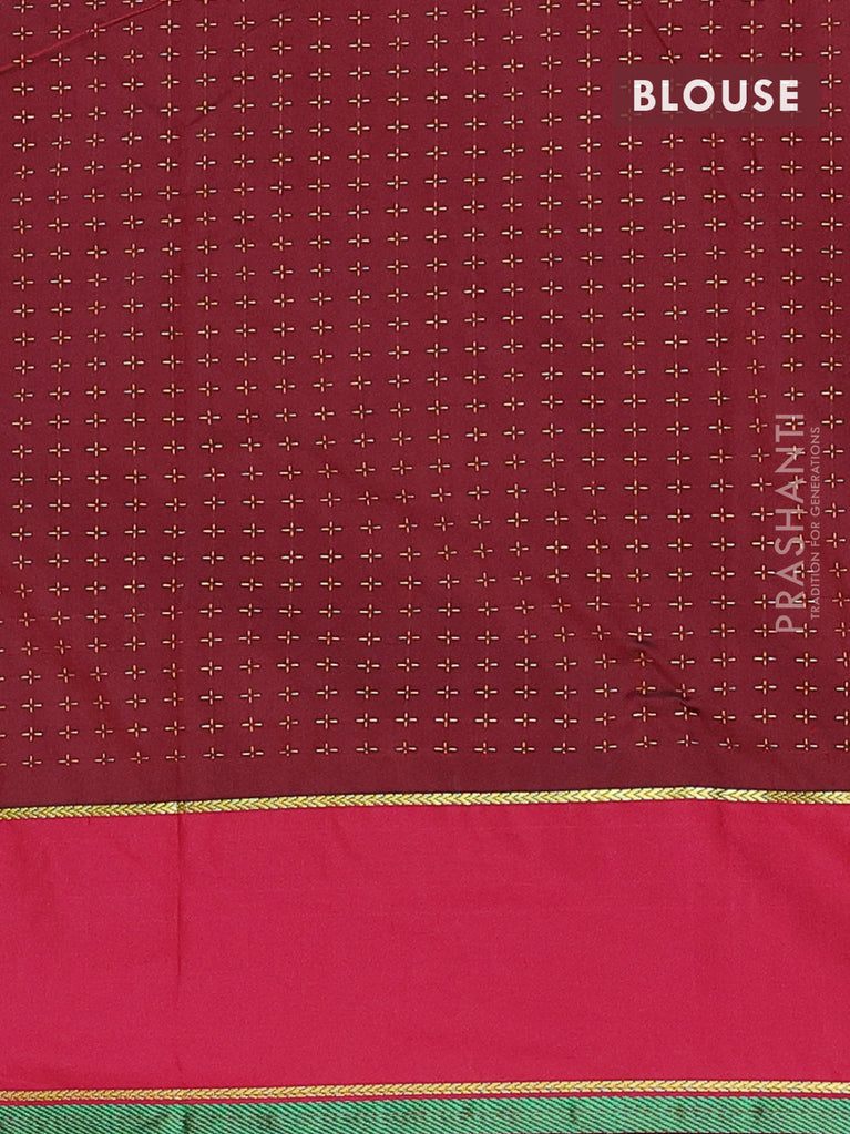 Arani semi silk saree peacock green and maroon with thread woven buttas and piping border