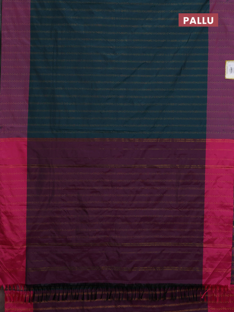 Arani semi silk saree peacock green and pink with allover zari weaves and zari woven border