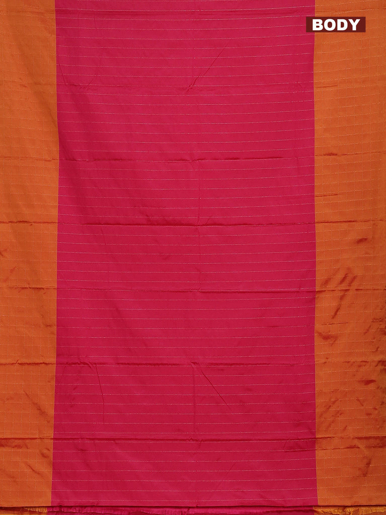 Arani semi silk saree pink and dark mustard with allover copper zari weaves and zari checked border