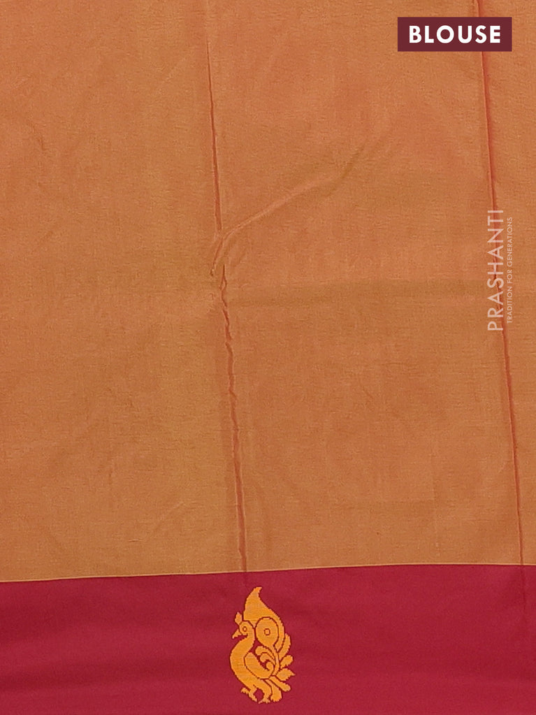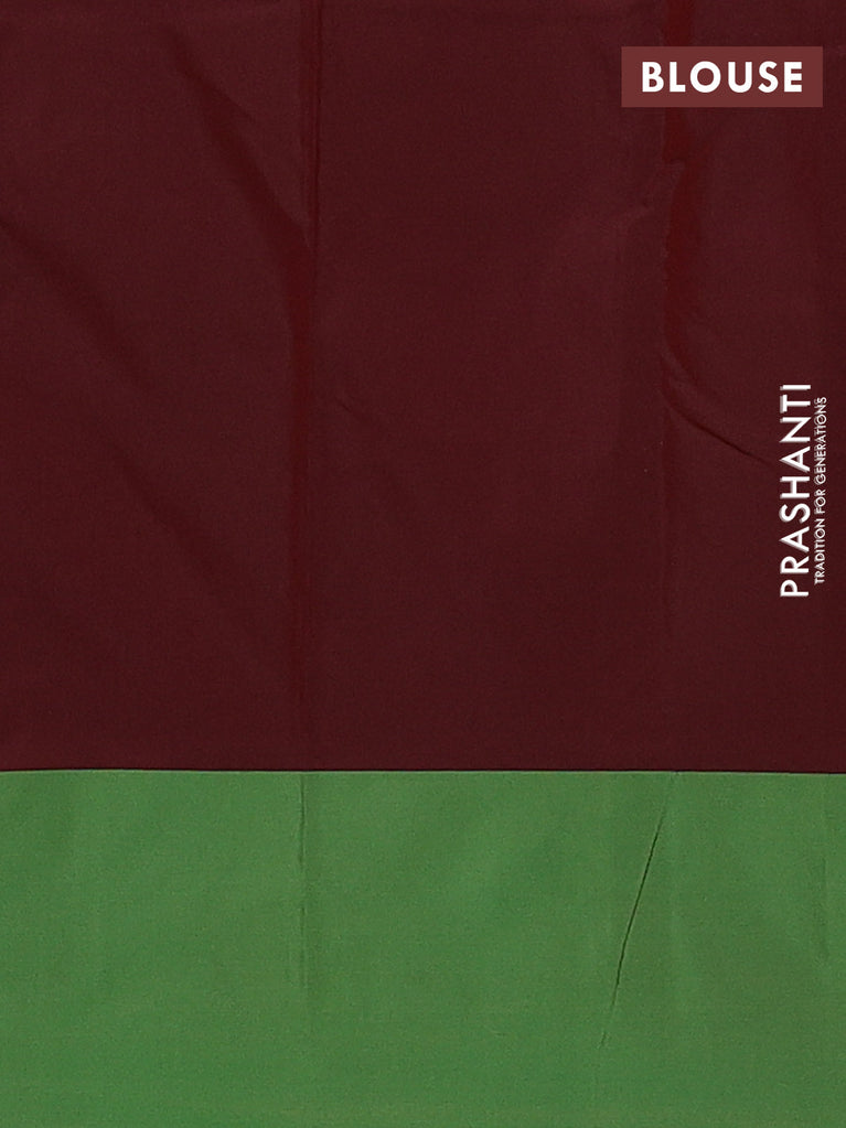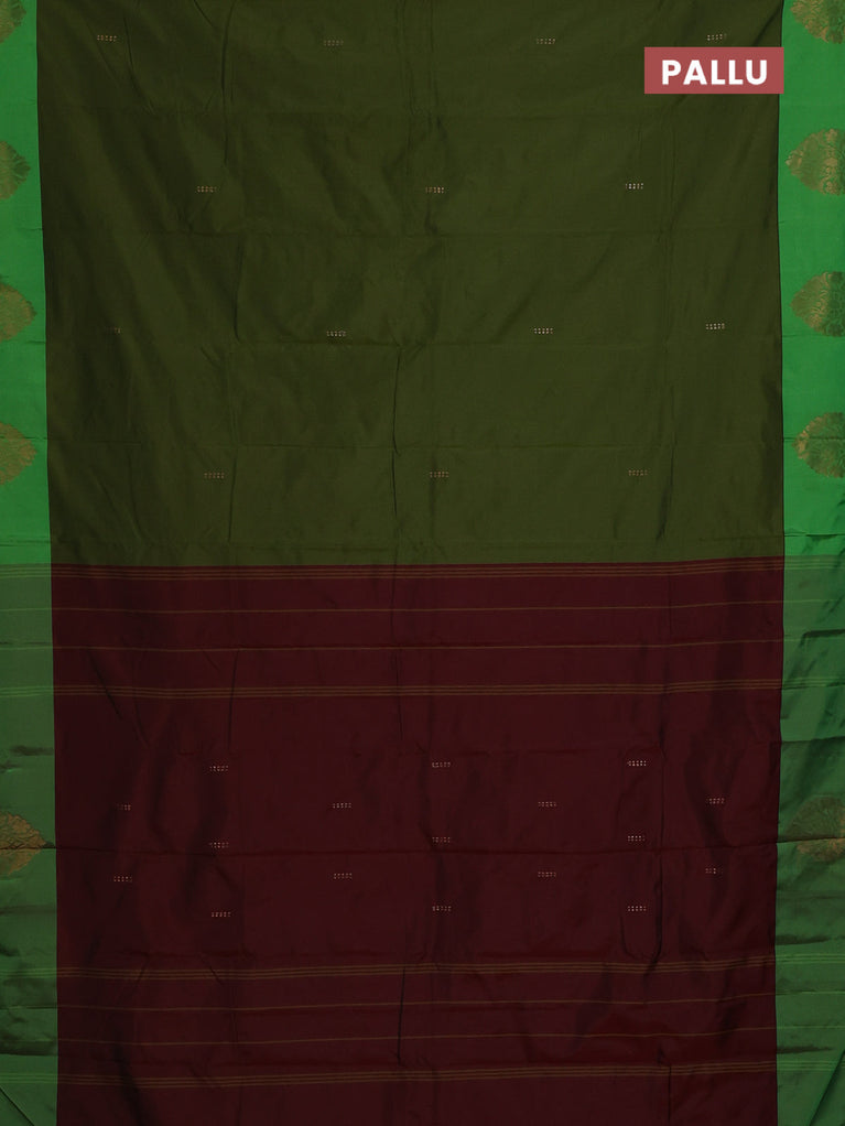 Arani semi silk saree sap green and dual shade of maroon with thread woven buttas and thread woven butta border