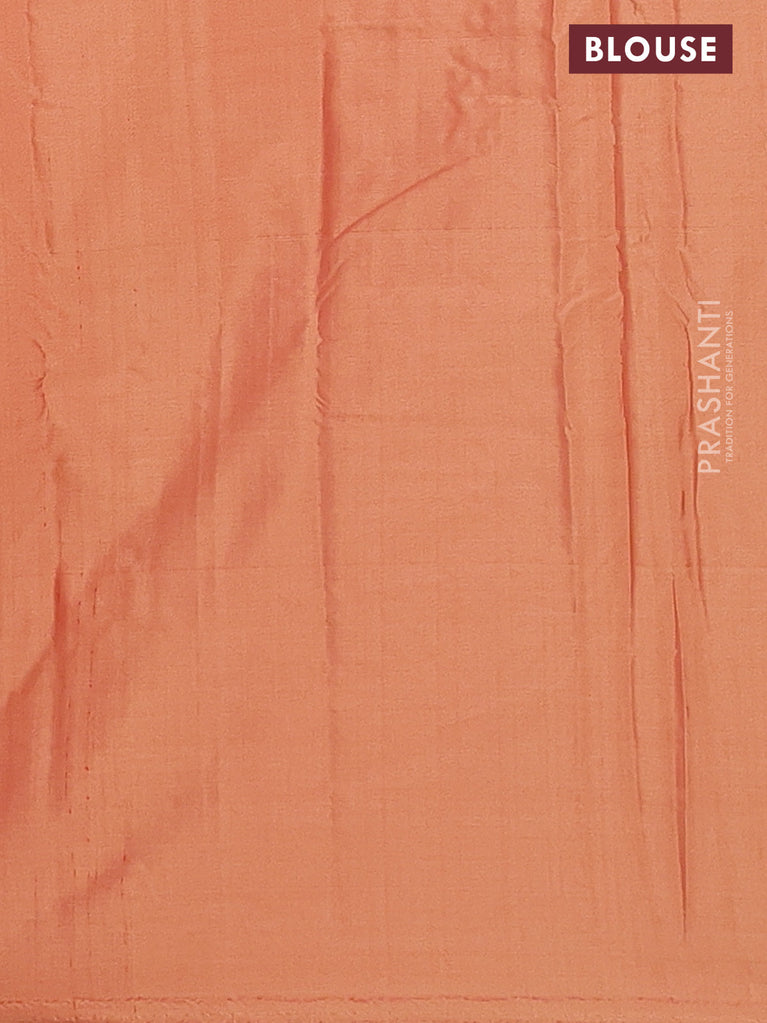 Arani semi silk saree rust shade and light green with allover silver zari weaves and piping border