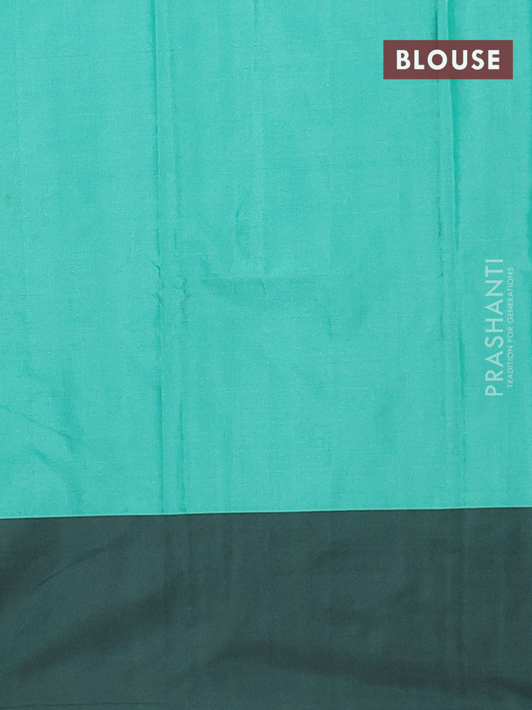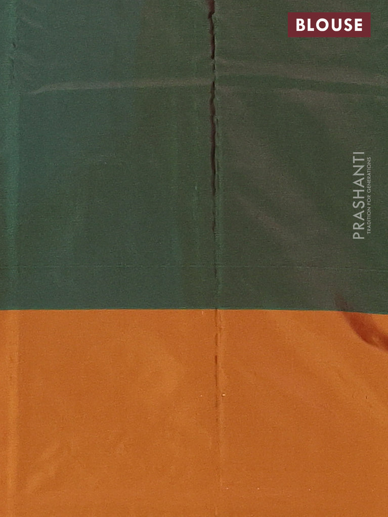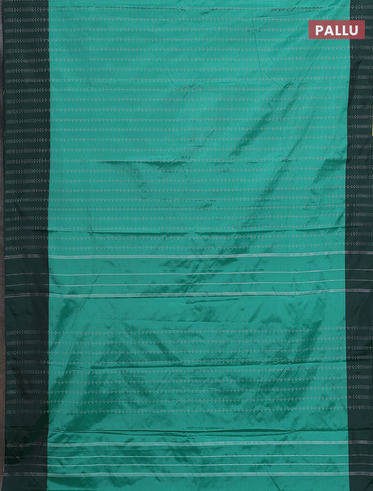 Arani semi silk saree teal green and dark green with allover silver & copper zari weaves and zari woven border