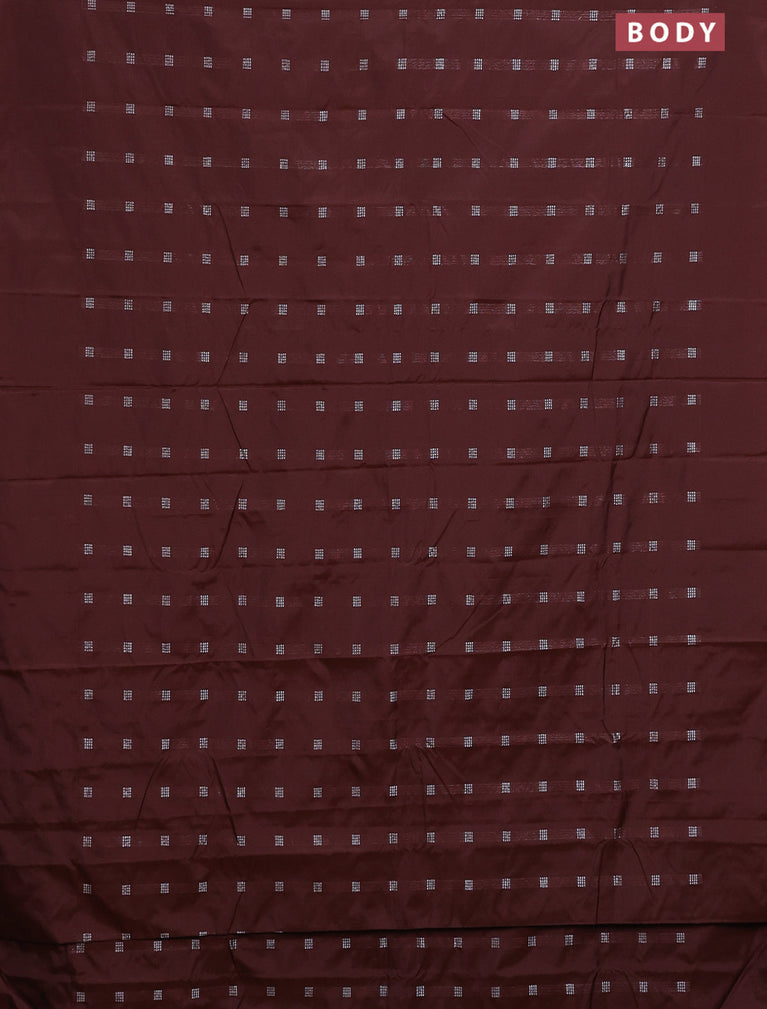 Arani semi silk saree rustic brown with silver zari woven buttas in borderless style