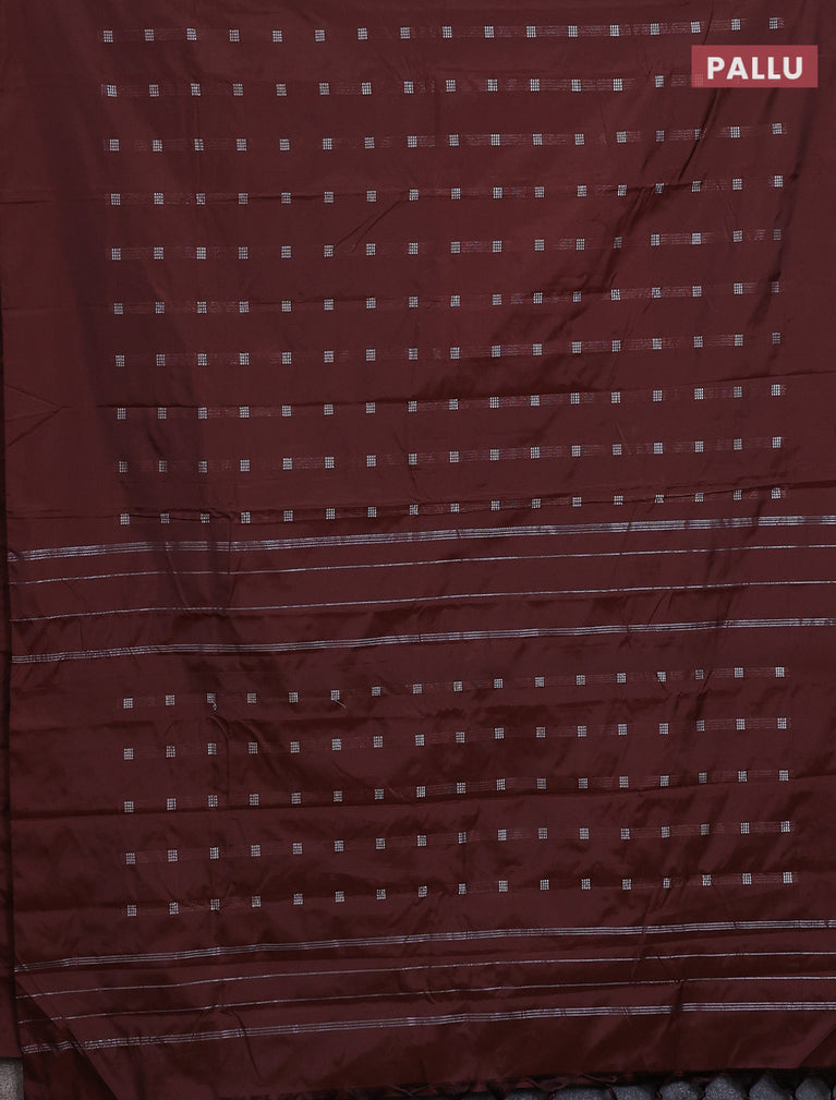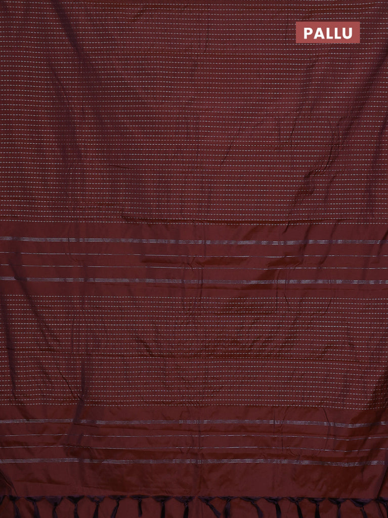 Arani semi silk saree rustic brown with allover silver zari weaves in borderless style