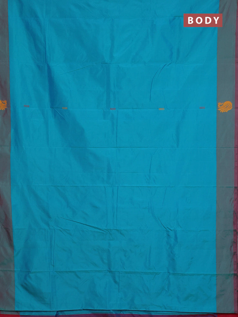 Arani semi silk saree teal blue shade and dual shade of mustard with zari woven buttas and paisley zari woven butta border