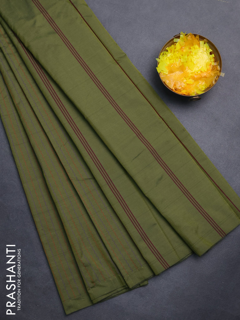 Arani semi silk saree sap green with allover thread weaves in borderless style