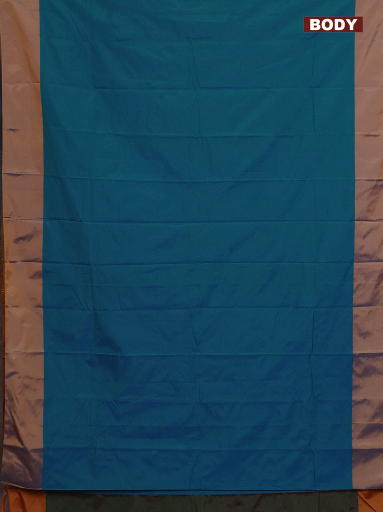 Arani semi silk saree teal blue with allover copper zari weaves in borderless style