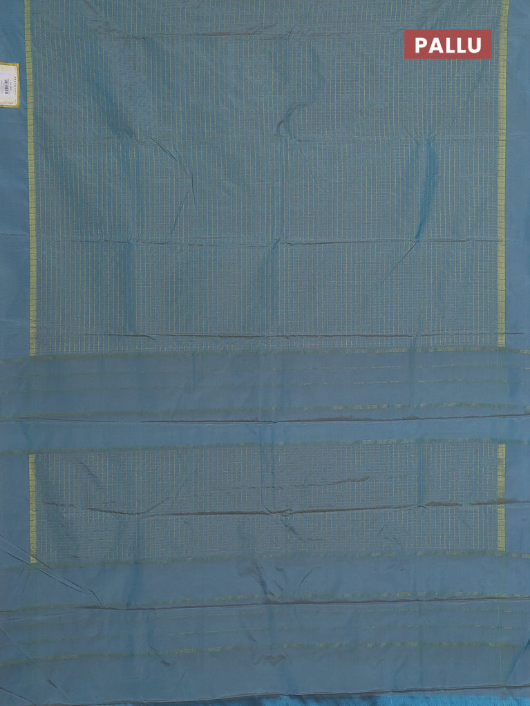 Arani semi silk saree teal blue shade with allover small zari checked pattern and zari woven simple border