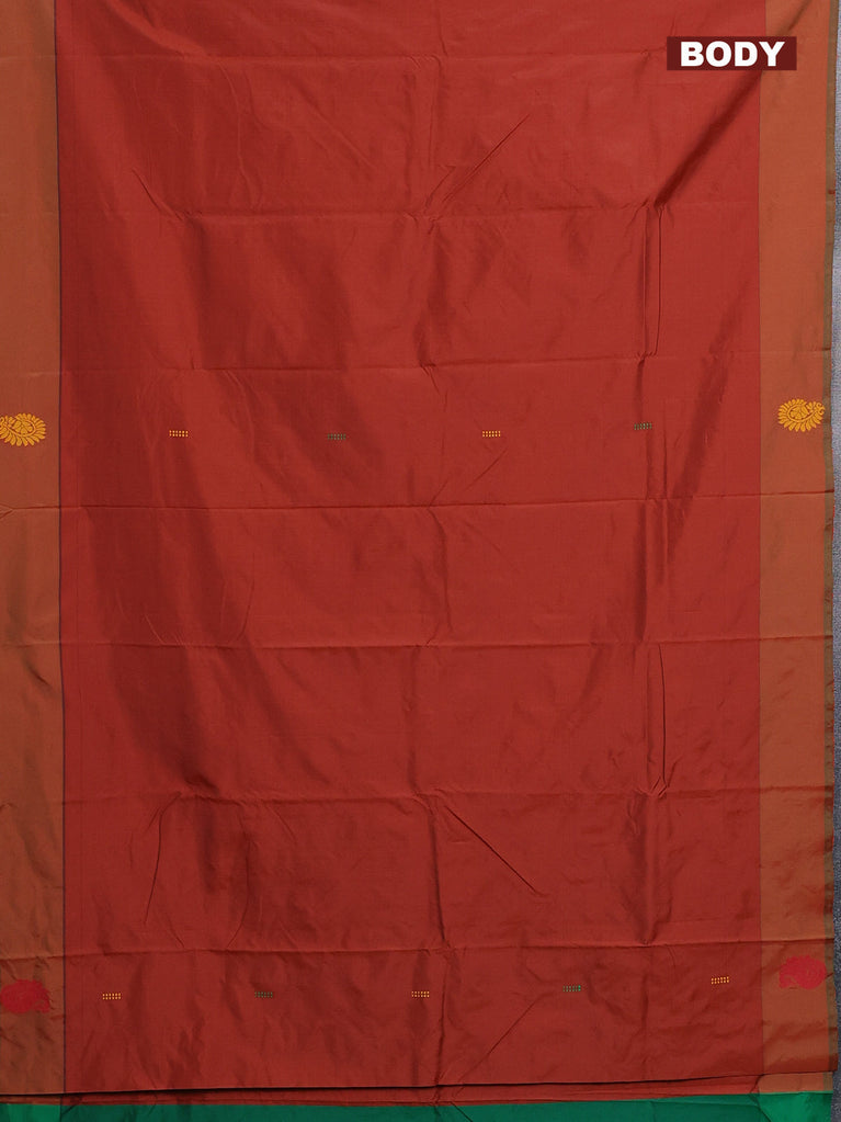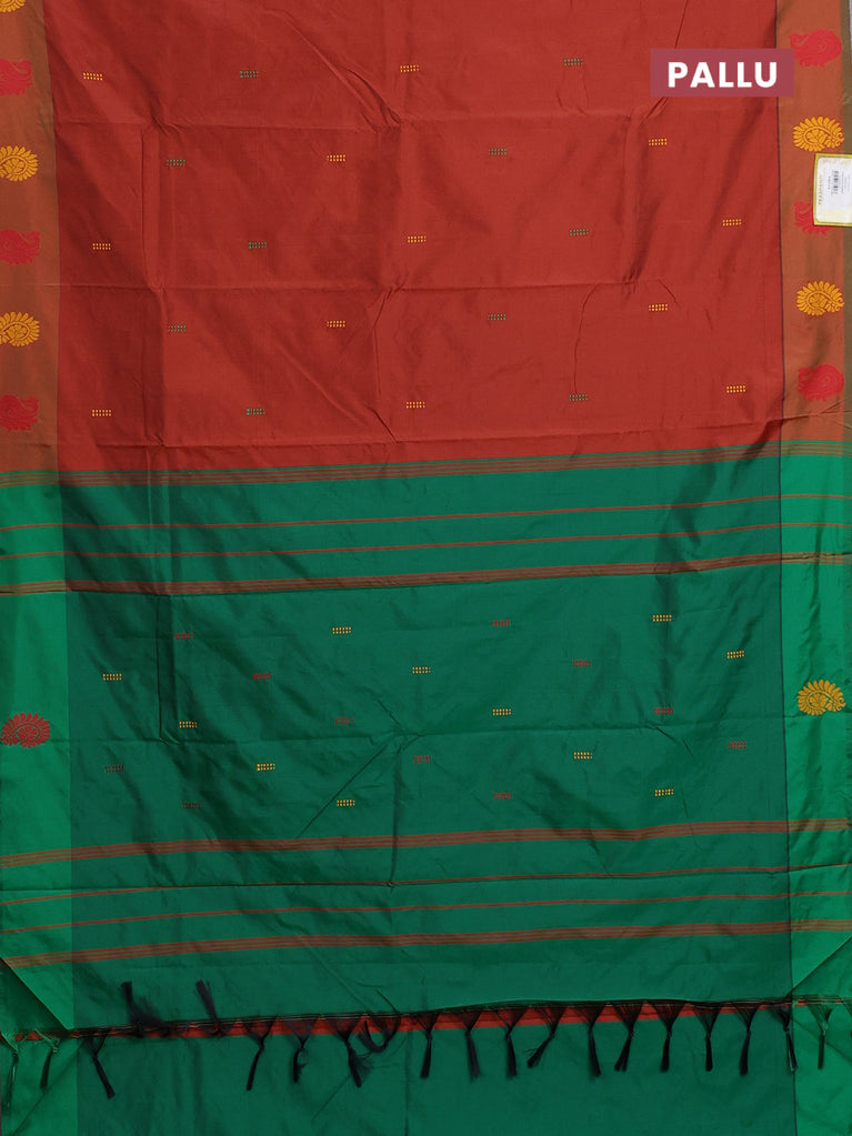 Arani semi silk saree rust shade and green with thread woven buttas and thread woven butta border