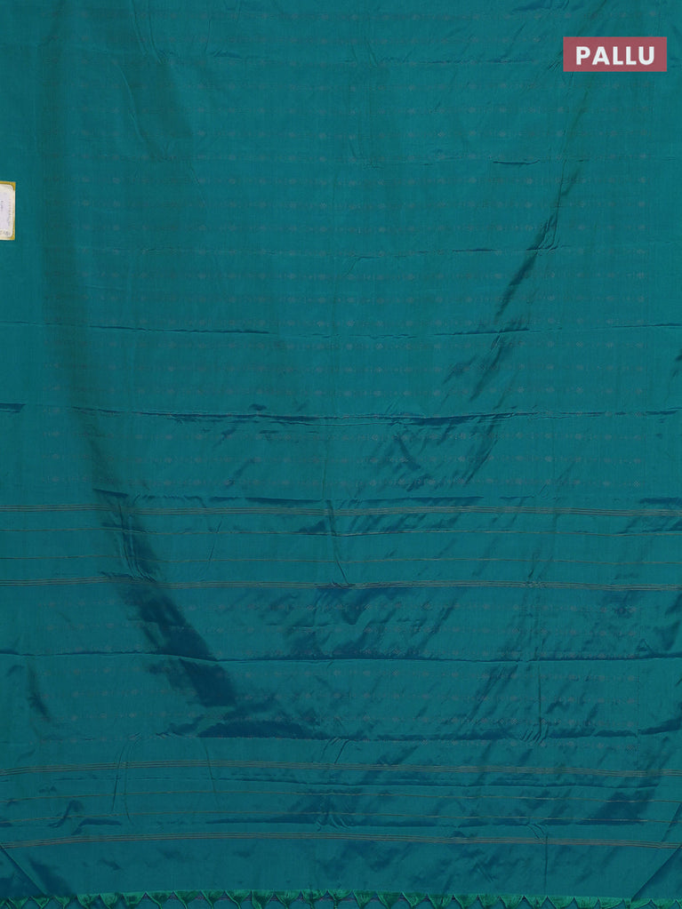 Arani semi silk saree teal blue shade with allover zari weaves in borderless style