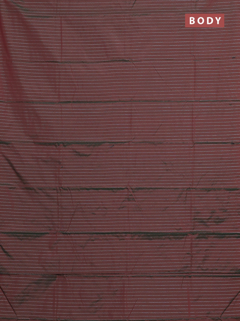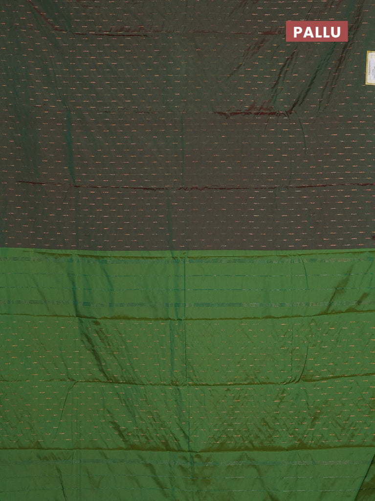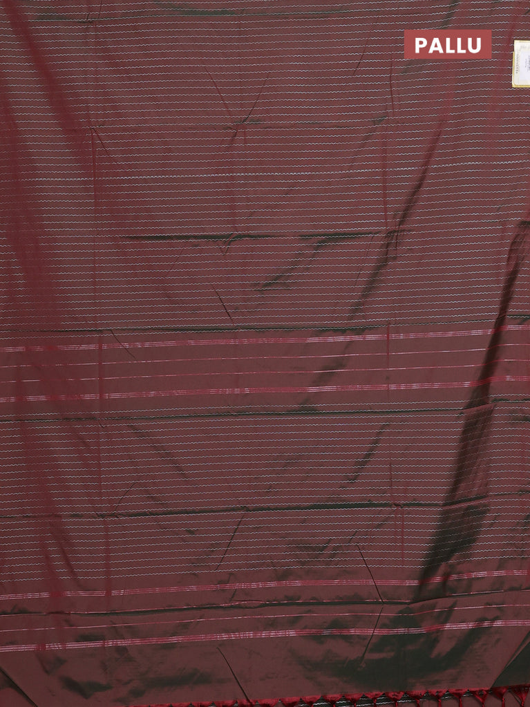 Arani semi silk saree dual shade of greenish maroon with allover silver zari weaves in borderless style
