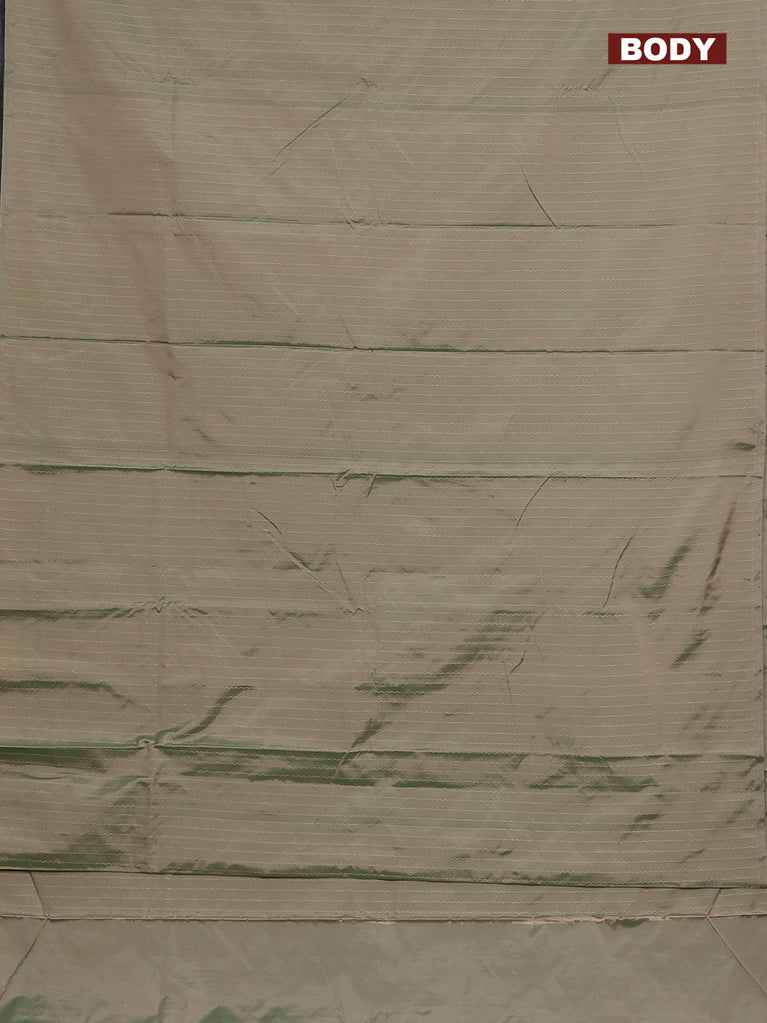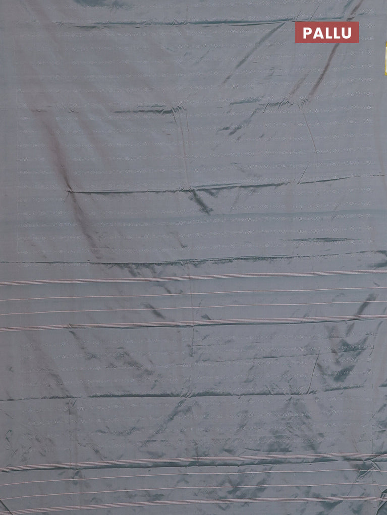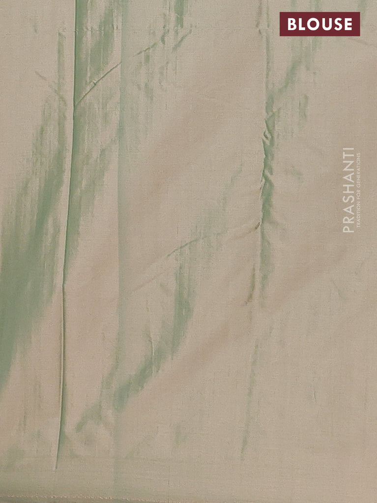Arani semi silk saree dual shade of greyish green with allover silver zari weaves in borderless style